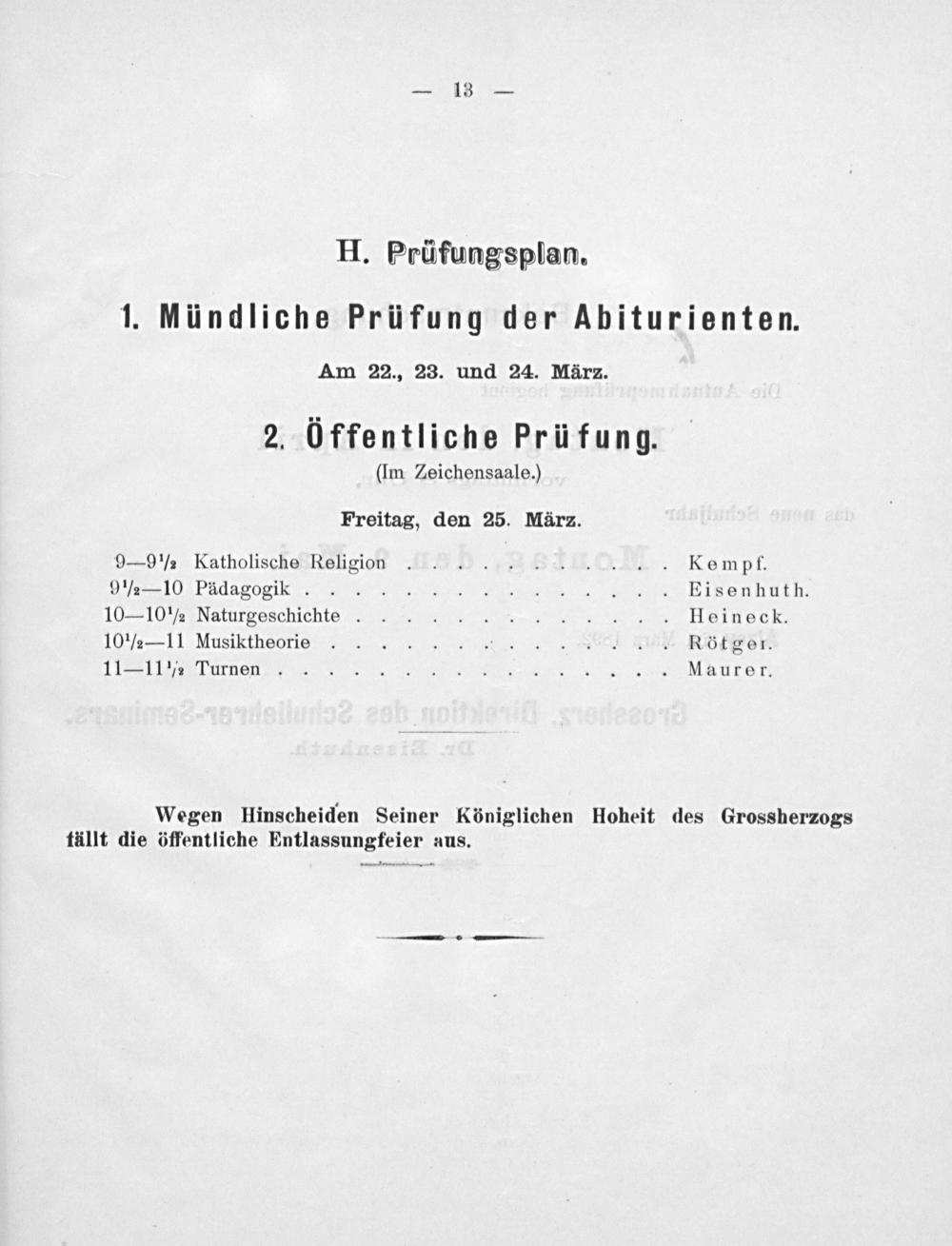 9—9'/s KatholischöReligien UFN. ‚= BSE.0Q2L. Kempf. Yeell Pdagögik>»,.:..,_.._..„ Bisenhuth 1U=10AasNaturgeschichte»©.....,.,.,. Helneck 10%—11 Musiktheorie.. 2»..„un. 2. eo} SUR ROLRSR 1lllds Turnen 0... 0 0...%... Mäurer.