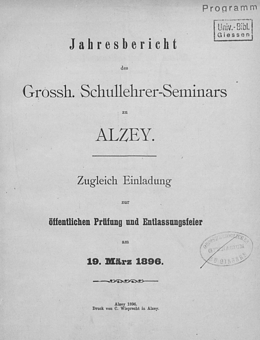 Alzey 1896. Druck von C. Wieprecht in Alzey.