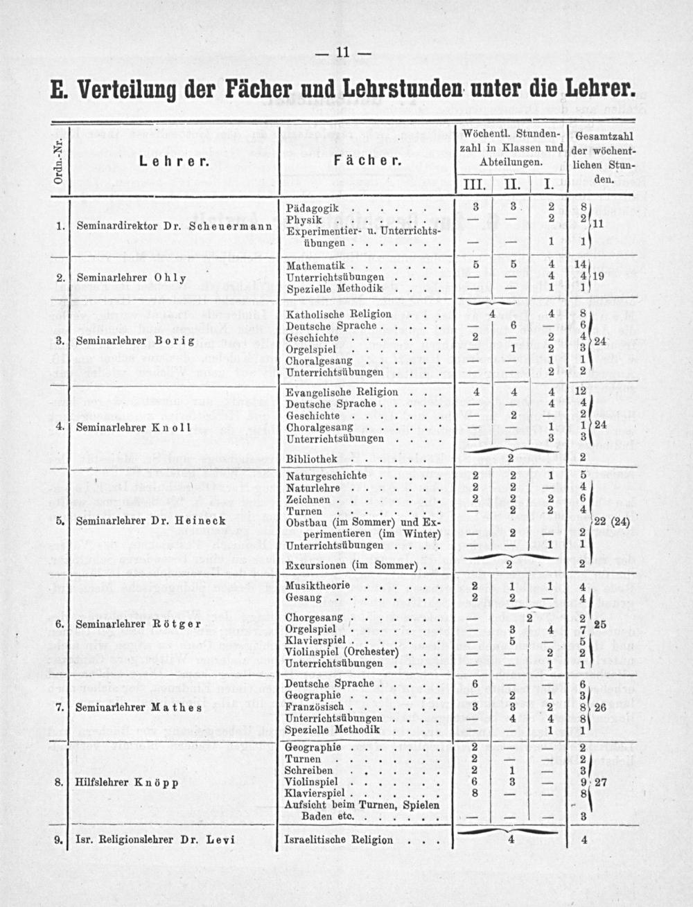 E. Verteilung der Fächer und Lehrstunden unter die Lehrer.