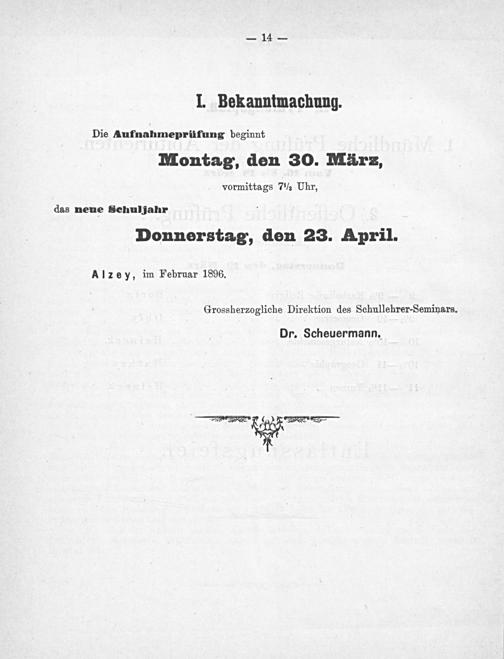 Donnerstag, den 23. April. Alzey, im Februar 1896,