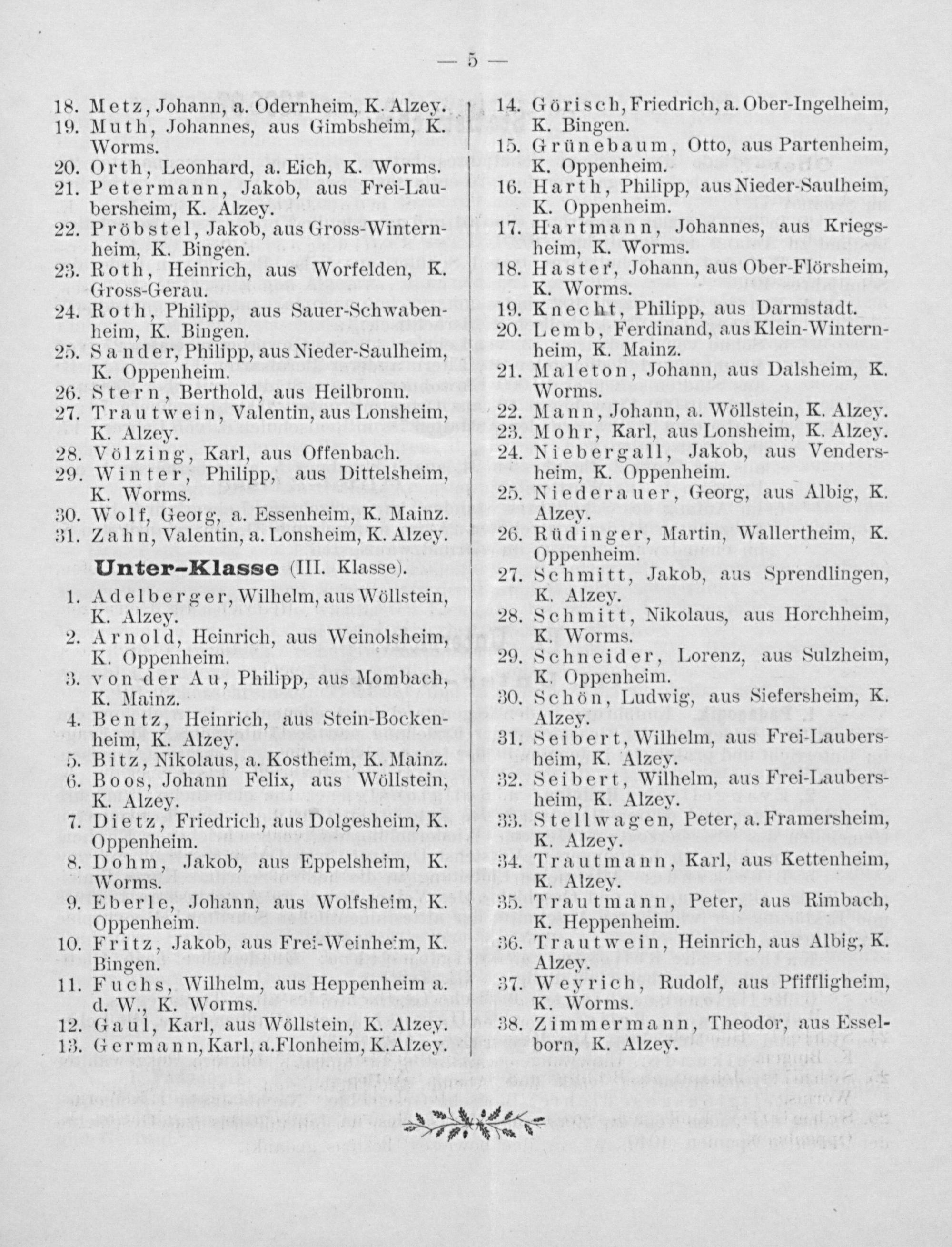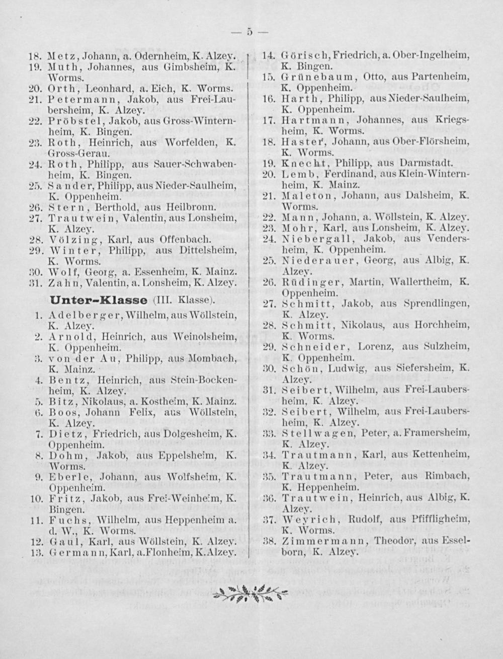 Orth, Leonhard, a. Eich, K. Worms. Petermann, Jakob, aus Frei-Lau- bersheim, K. Alzey.