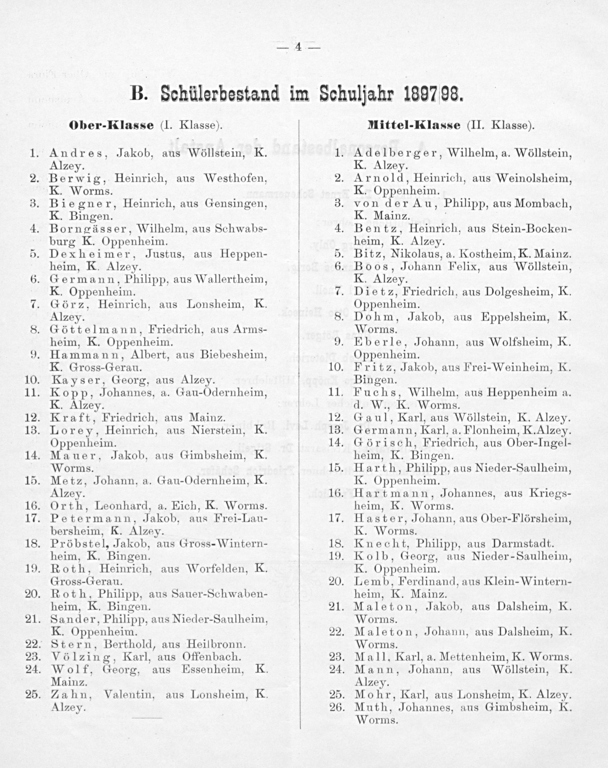 Dietz, Friedrich, aus Dolgesheim, K. Oppenheim. Dohm, Jakob, Worms. Eberle, Johann, Oppenheim. Fritz, Jakob, aus Frei-Weinheim, K. Bingen.