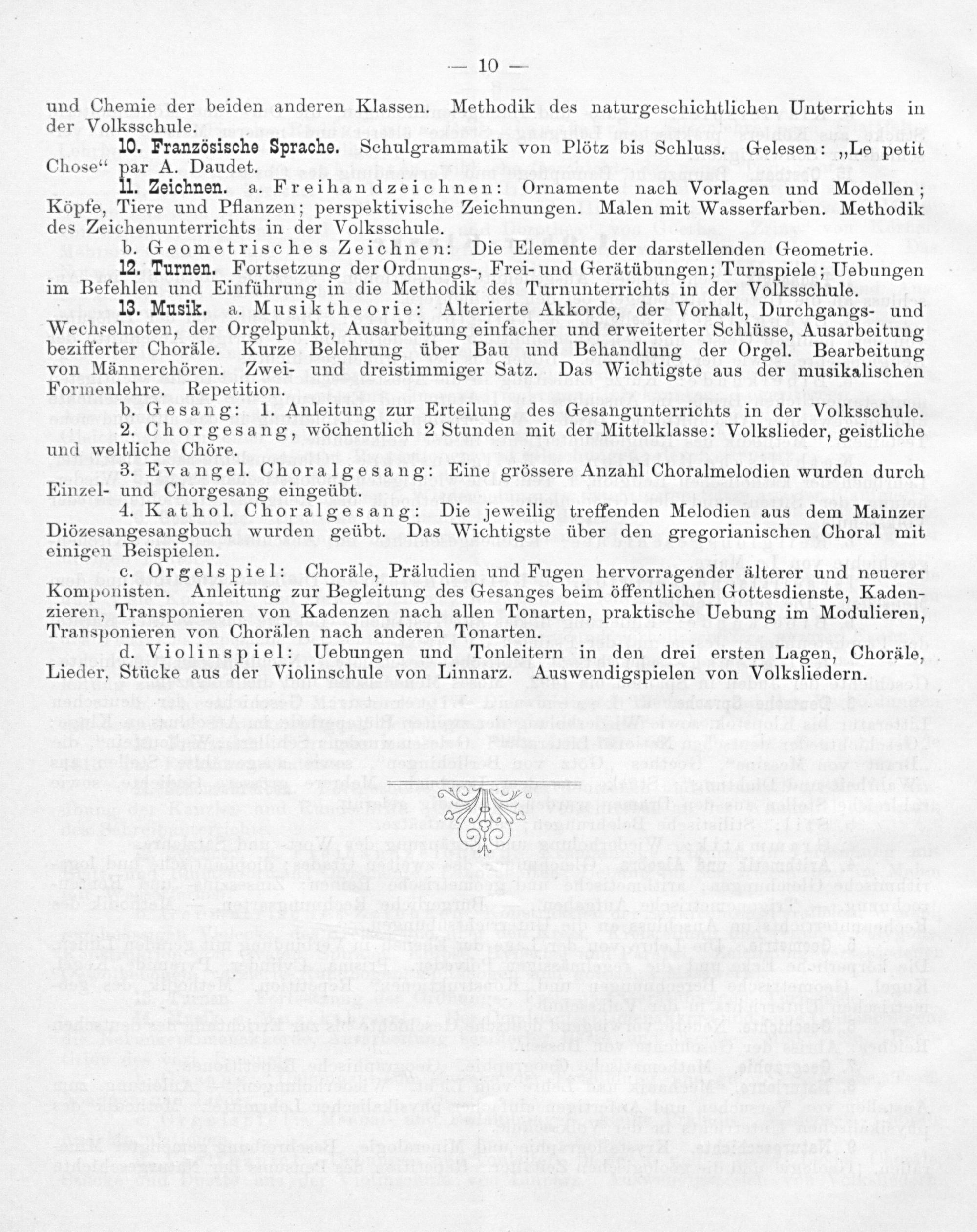 10. Französische Sprache. Schulgrammatik von Plötz bis Schluss. Gelesen:„Le petit Chose‘“ par A. Daudet.