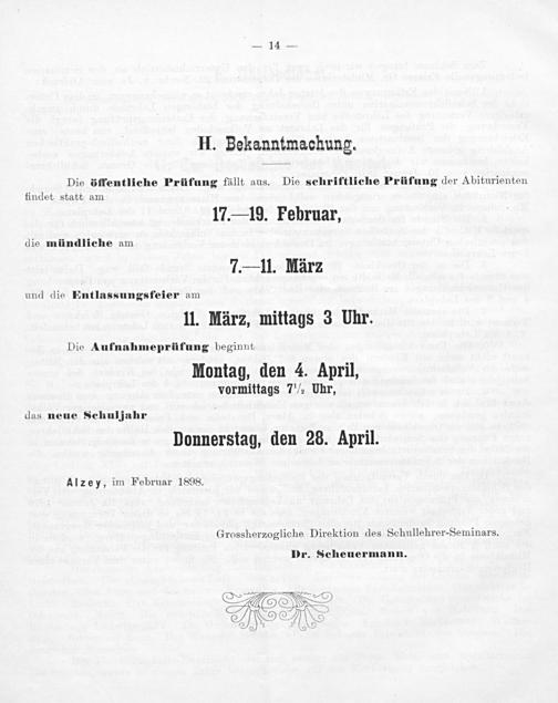 H. Bekanntmachung. Die öffentliche Prüfung fällt aus. Die schriftliche Prüfung der Abiturienten