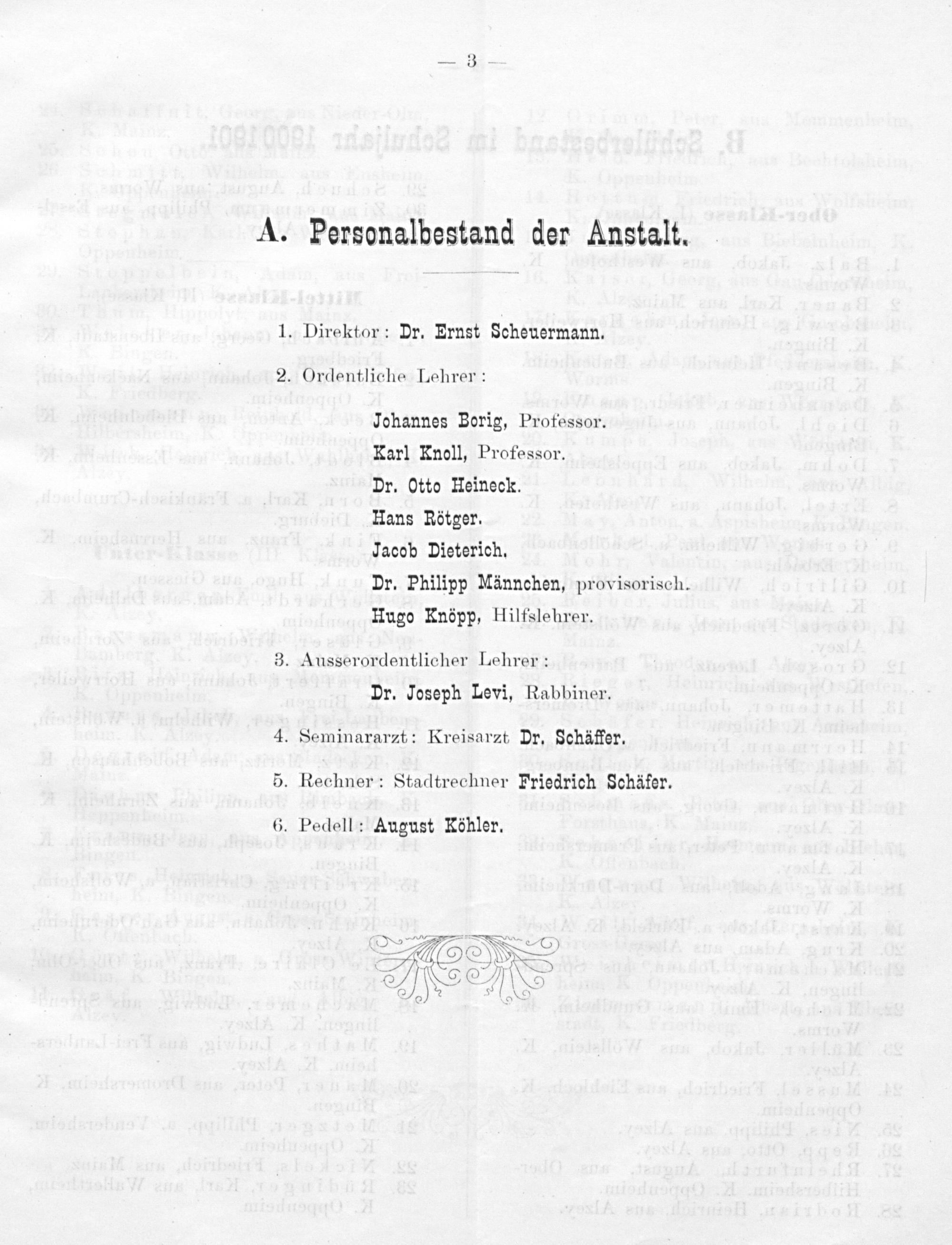Dr. Joseph Levi, Rabbiner. 4. Seminararzt: Kreisarzt Dr, Schäffer. 5. Rechner: Stadtrechner Friedrich Schäfer.