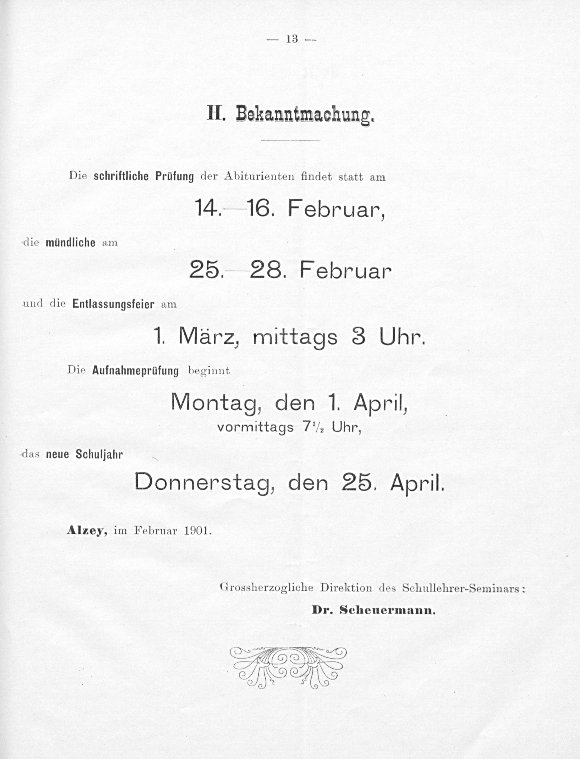Grossherzogliche Direktion des Schullehrer-Seminars: