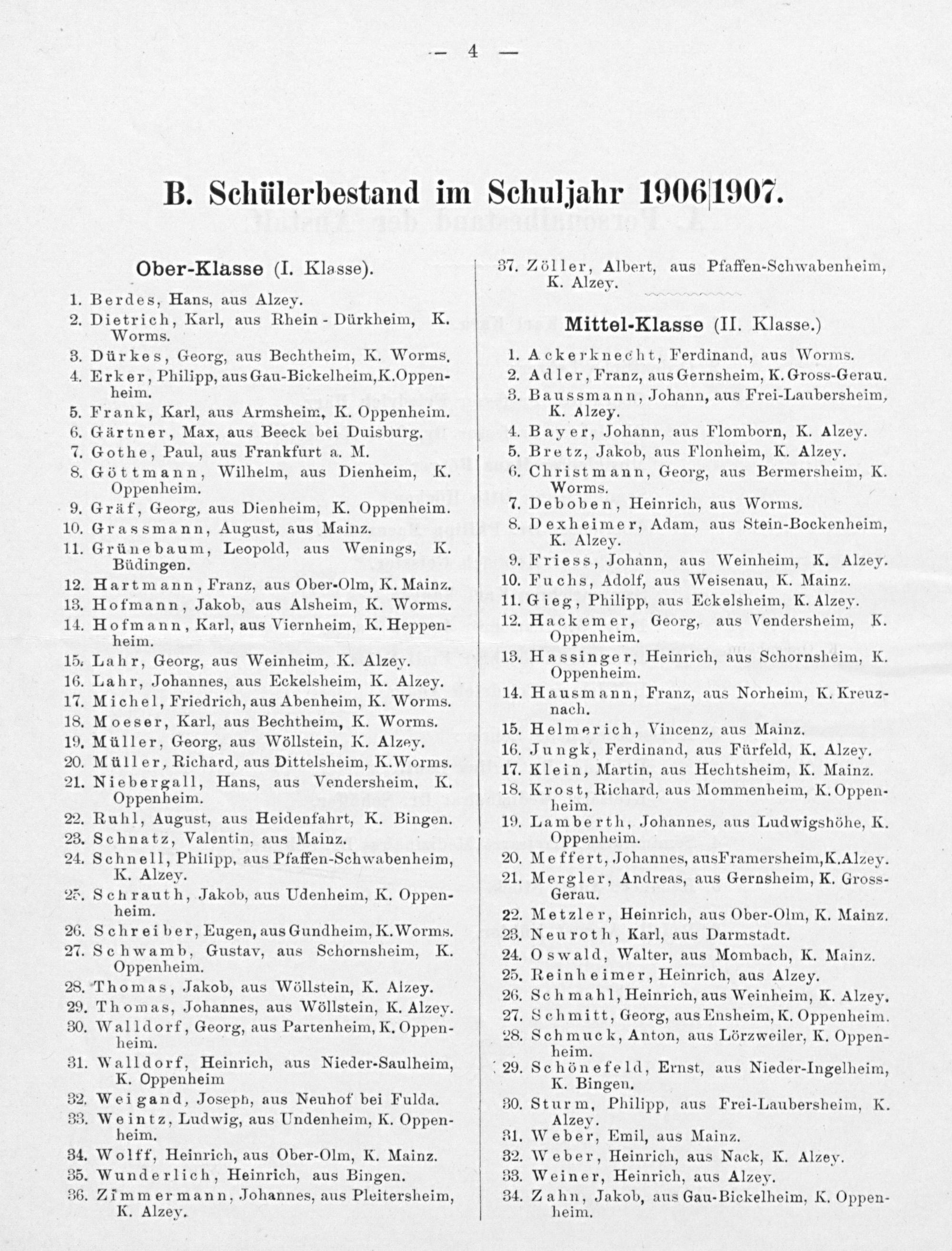 . Wolff, Heinrich, aus Ober-Olm, K. Mainz. . Wunderlich, Heinrich, aus Bingen. . Zimmermann, Johannes, aus Pleitersheim,