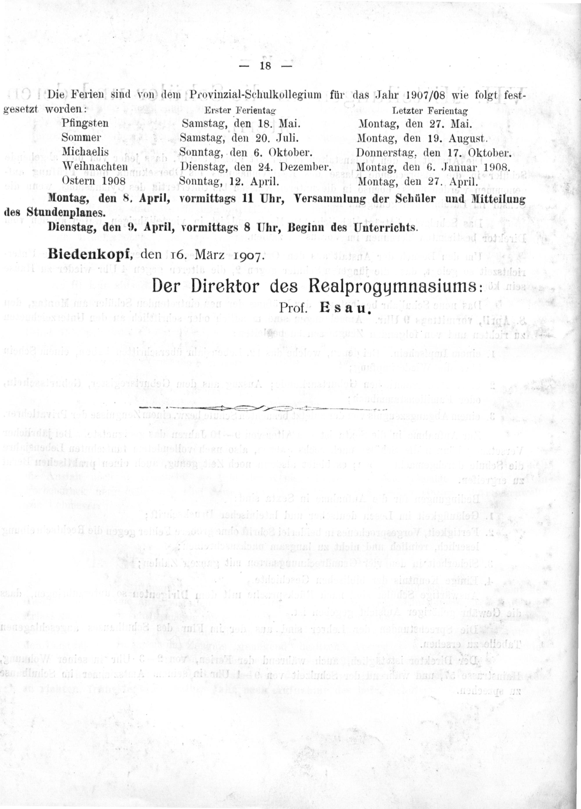 Der Direktor des Realprogumnasiums: Prof. Esau.