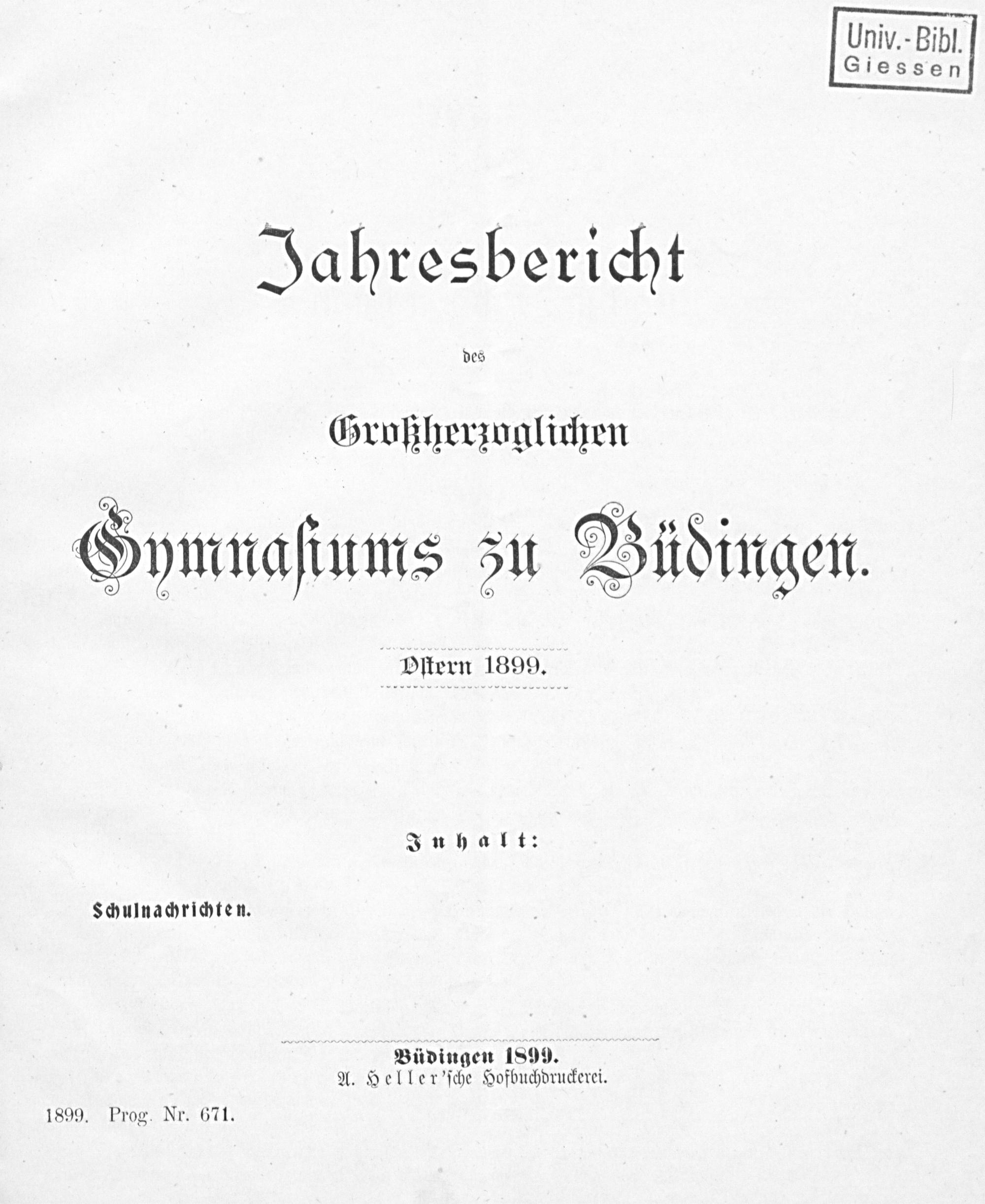 Büdingen 1899. A. Heller'ſche Hofbuchdruckerei.