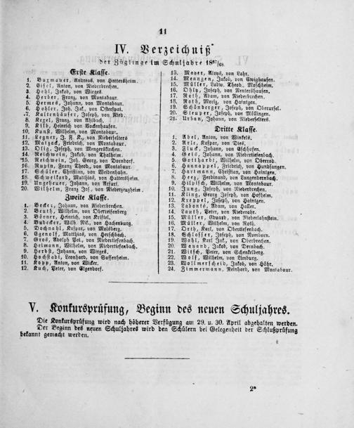 Mayer, Aloys, von Lahr. Menngen, Jakob, von Ewighauſen. Müller, Ludw. Theod., Moſchheim. Ohly, Joſeph, von Nentershauſen. Roth, Adam, von Niederbrechen. Roth, Moriz, von Haintgen. Schönberger, Joſeph, von Oberurſel. Steuper, Joſeph, von Möllingen. Urban, Johann, von Niederſelters.