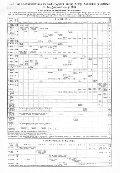 III. A. Die Unterrichtsverteilung des Großherzoglichen Ludwig-Georgs-Gymnaſiums zu Darmſtadt