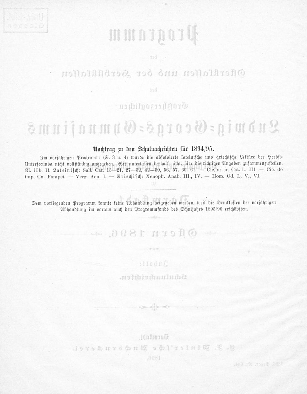 Dem vorliegenden Programm konnte keine Abhandlung beigegeben werden, weil die Druckkoſten der vorjährigen Abhandlung im voraus auch den Programmfonds des Schuljahrs 1895/96 erſchöpften.