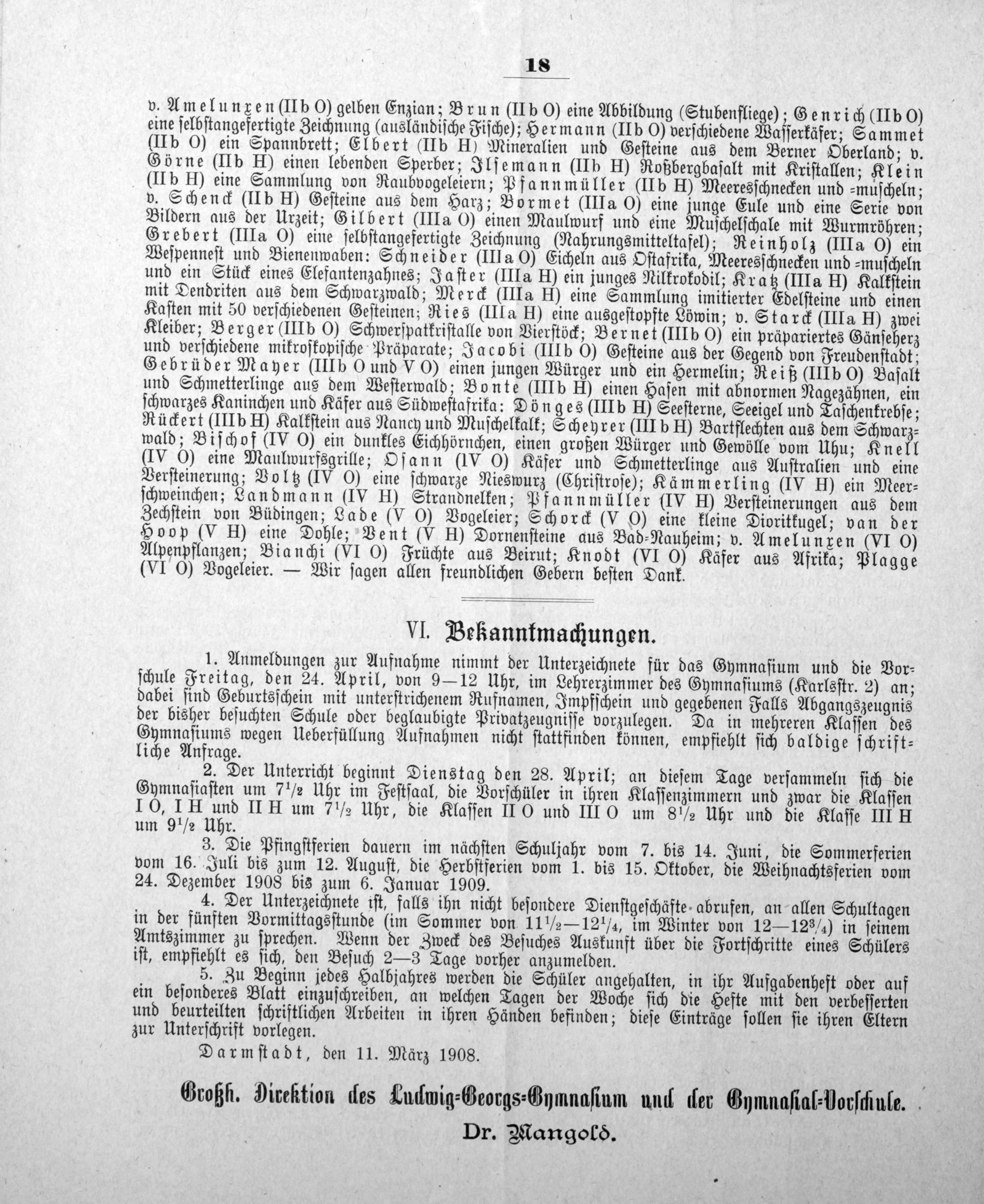 Großh. Direktion des Ludmig⸗Georgs⸗Gymnaſinm und der Gymnaſial⸗Uorſchule. Dr. Mangold.