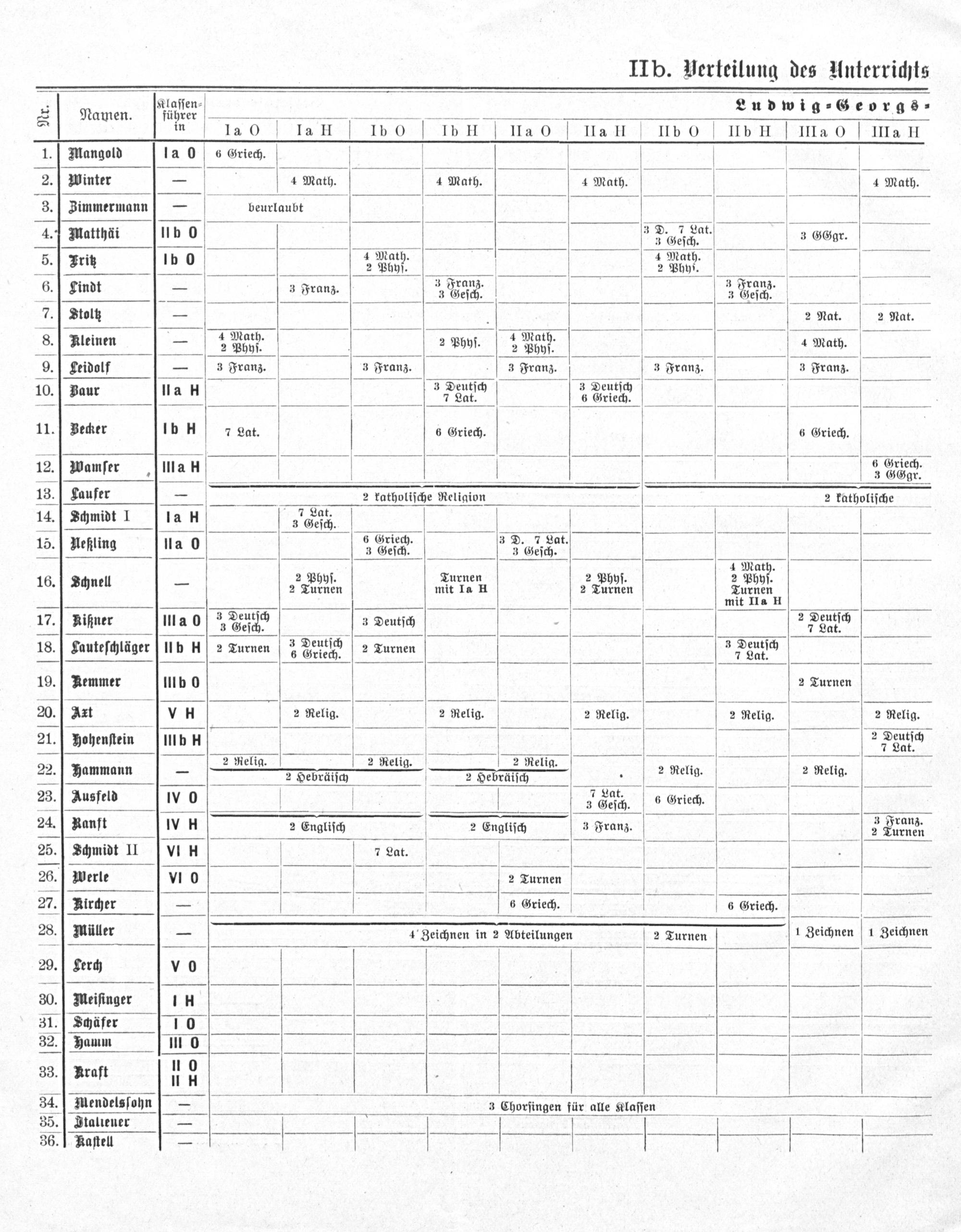 Klaſſen⸗ Ludw Ge 8 ½ Namen. fuührer— ig⸗ orgs⸗ in 1a 0]la H] Ibo 1Ib H IIa O 1la Hl IIbo 1I1b H[111a 0 IIIa H 1. Mangold la 0 6 Griech. 2. Winter— 4 Math. 4 Math. 4 Math. 4 Math. 3.] Zimmermann— beurlaubt 4.] WMatthäi 11 b 0 4 D gſch.. a GGgr. 1 41 Math. 1 Math. 5. Fritz 1b 0* Math 4 Mn9 4 6. Lindt— 3 Franz. 3. Jranz. 2 Franz. 7. Stoltz—. 2 Nat. 2² Nat 8— 1 Math. 4 Math. 8. Rleinen 2 Phyf. ² Phyſ. 22 Phyf. 4 Math. 9. Leidolf— 3 Franz. 3 Franz. 3 Franz. 3 Franz. 3 Franz. 10. Baur 1a H ¹7Lntſe Brteſs 11. Becker Ib H7 Lat. 6 Griech. 6 Griech. 12. wamſer ulaHh 6 Geech. 13. Laufer— 2² katholiſche Religion 22 katholiſche 7 Lat. 14. Schmidt 1 lah 3 eat,. 15. Neßlling lla 0 6 Geſch. à Pe hat. 2 2 2 Pbvſ 4 Wauh. . n.. 16. Schnell— 2 Lohdn 8 Pe H 2 wen 2heſ — mit IIa H 17. Rißner una O* Teuſch Deutſch 2 Deiſch 18. Cauteſchläger lb H 2 Turnen 2 Hentich 2 Turnen 4 Dentſch 19. Remmer 1IIb 0 2 Turnen 20. Axt VH 2 Relig. 2 Relig. 2 Relig. 2 Relig. 2 Relig. 91 nehnſtejn 2 Deut 21. Hohenſtein IlIb H 7 Lutſch „ 2 Relig. 2 Relig. 2 Relig... 22. Hammann— ZSebraſch I ZDebralſch 3 2 Relig. 2 Relig. 23. Ausfeld IV O* Iath. Griech. 24. Ranft VH 2 Enaliſch ² Engliſch ³ Franz. ¹ Purna 25.] Schmidt IIVI H V 7 Lat. 26.] Werle VIO 2 Turnen 27. Aircher— 6 Griech. 6 Griech. 28. Müller— 4 Zeichnen in 2 Abteilungen 2 Turnen ¹ Zeichnen 1 Zeichnen 29. Lerch V 0 30. Meifinger 1 H 31. Schäfer 10 32. Haum 1Il 11 0 33. Rraft II H 34. Mendelsſohn— 3 Chorſingen für alle Klaſſen— 35. Itauieuer— 36.] Raſtell—