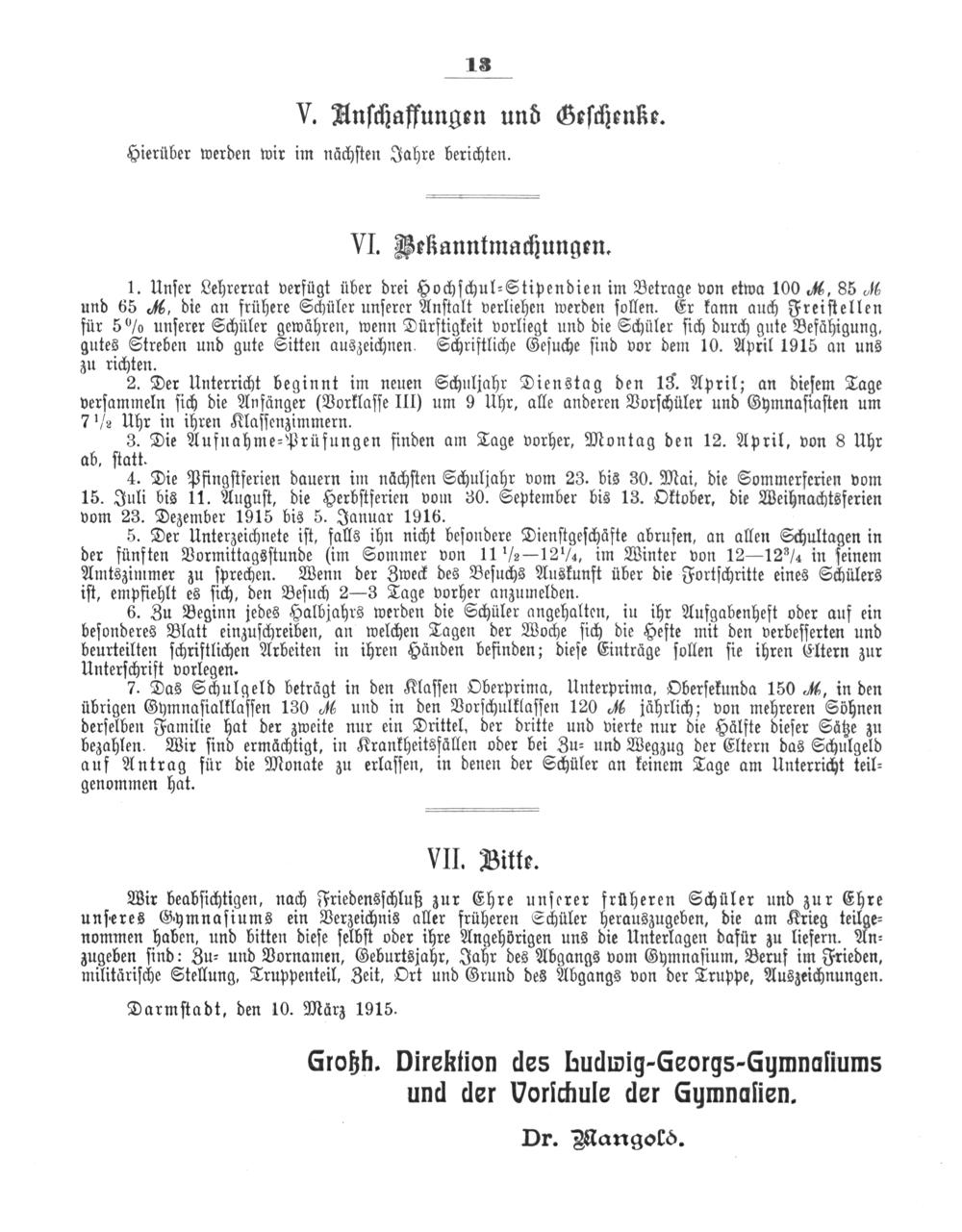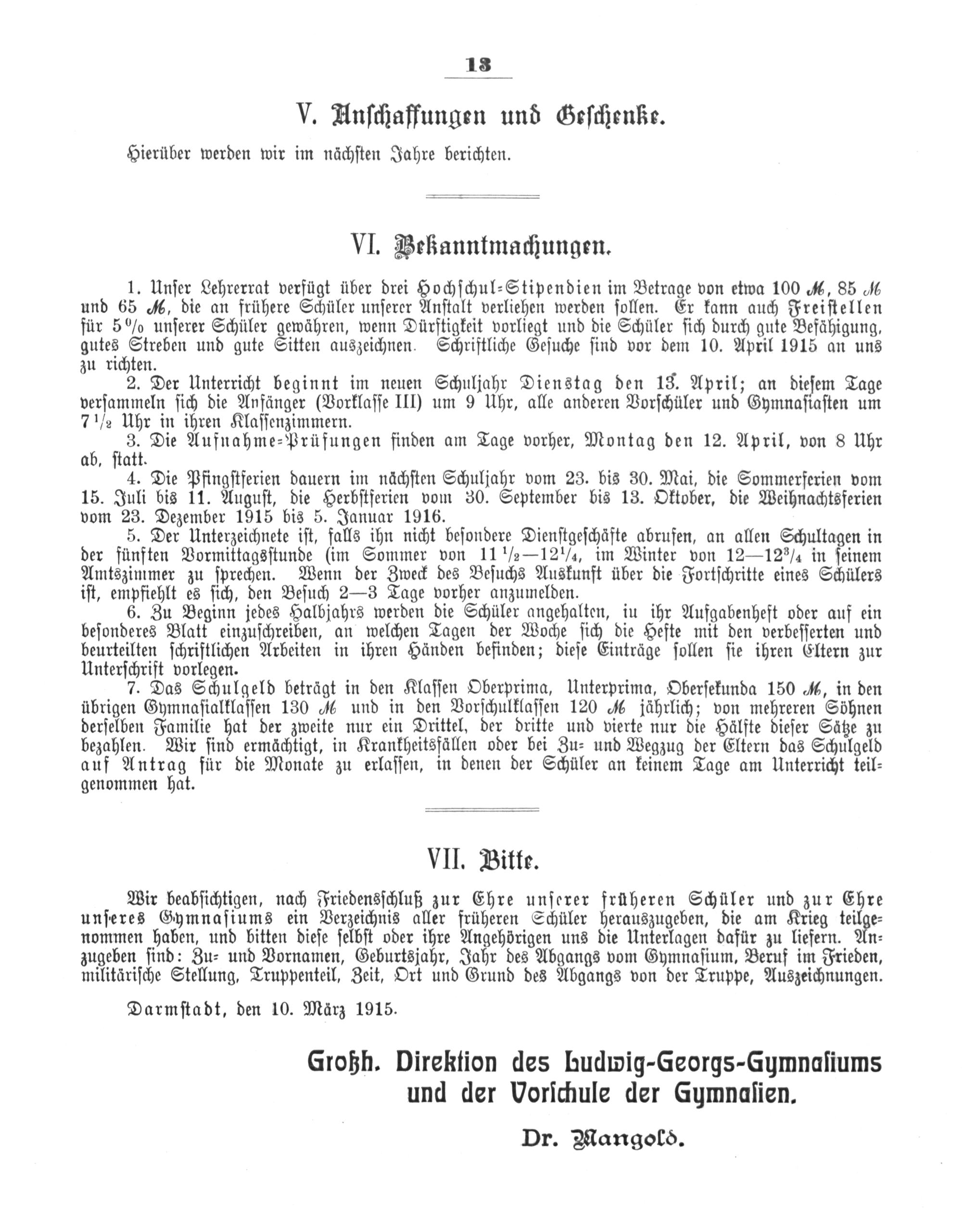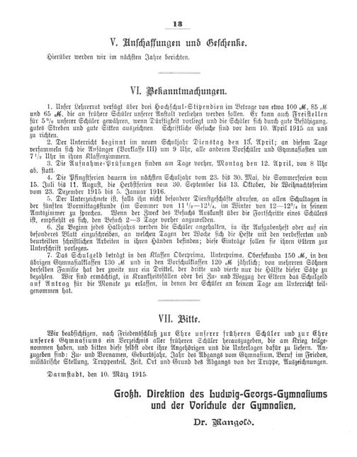 Großh. Direktion des hudwig-Georgs-Gumnaſiums und der Vorſchule der Gumnaſien.