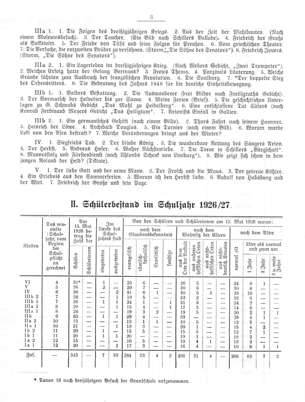 II. Schülerbeſtand im Schuljahr 1926/27.