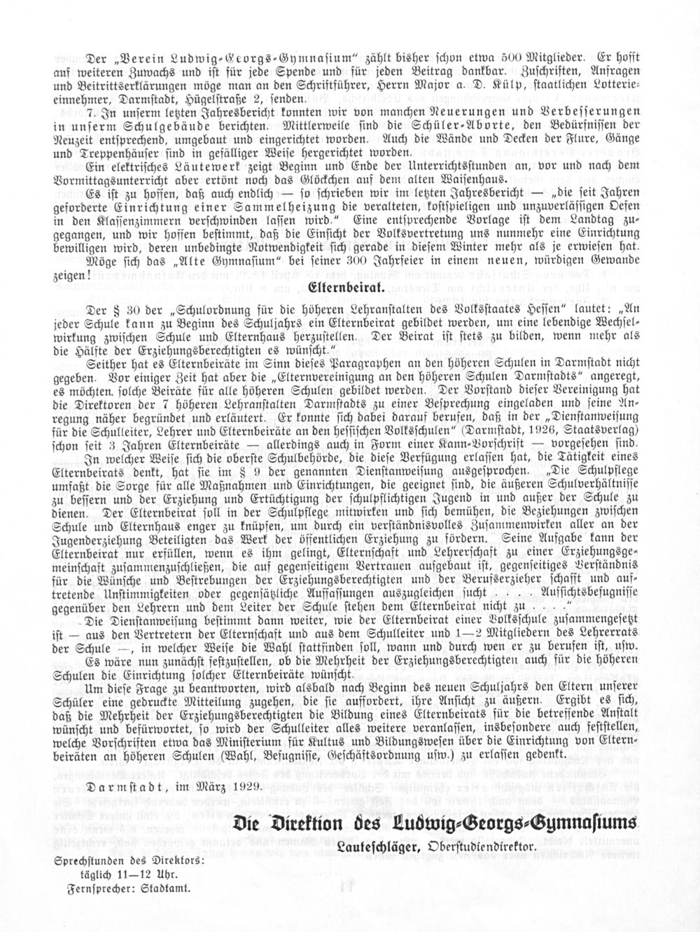 Laukeſchläger, Oberſtudiendirektor. Sprechſtunden des Direktlors: käglich 11—12 Uhr. Fernſprecher: Stadtamt.