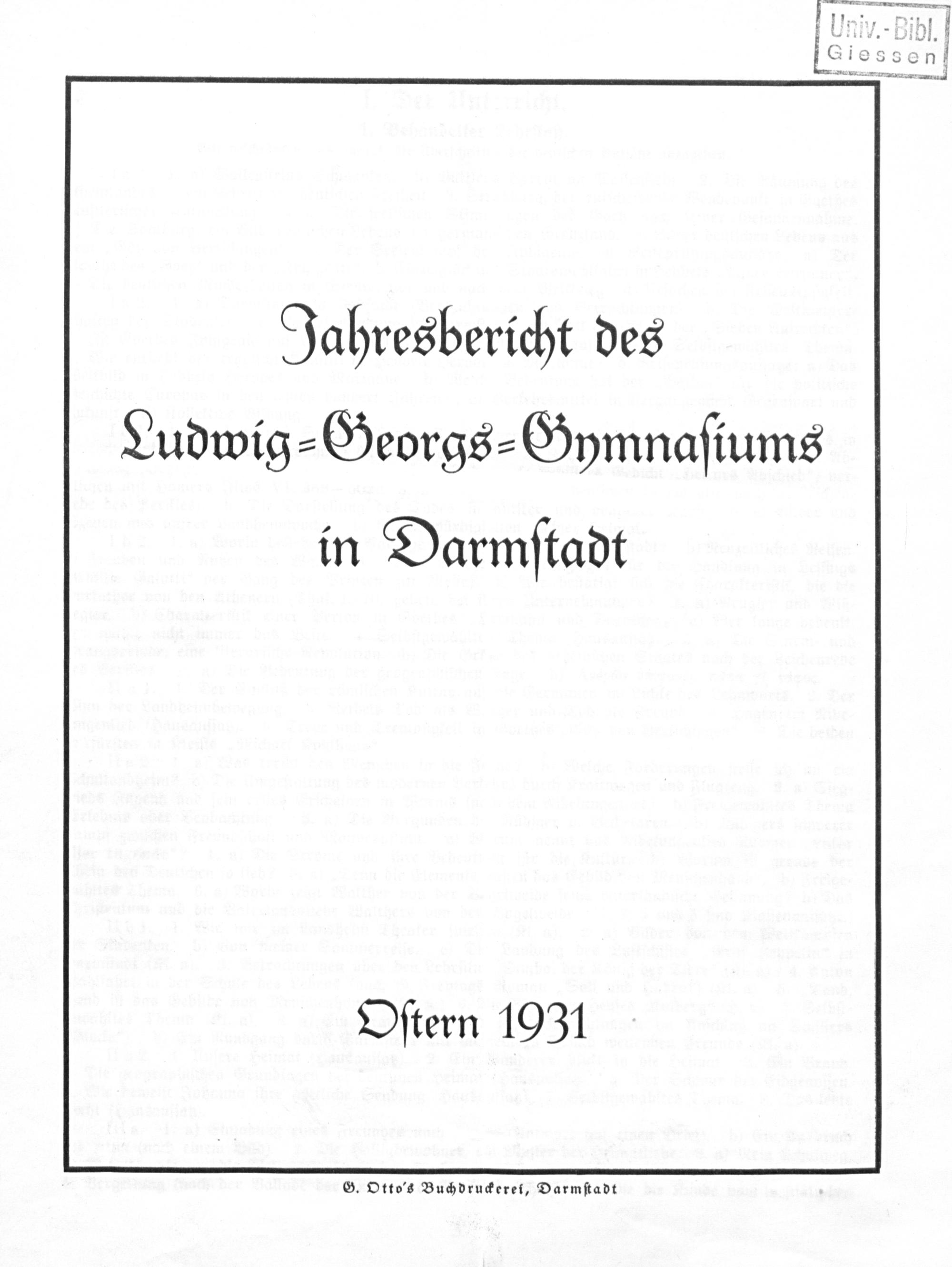 Jahresbericht des Ludwig⸗Georgs⸗Gymnaſiums in Darmſtadt Oſtern 1931 G. Otto's Buchdruckerei, Darmſtadt