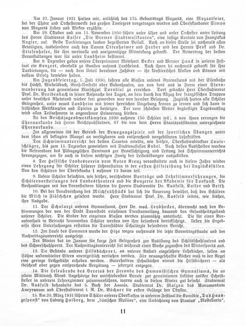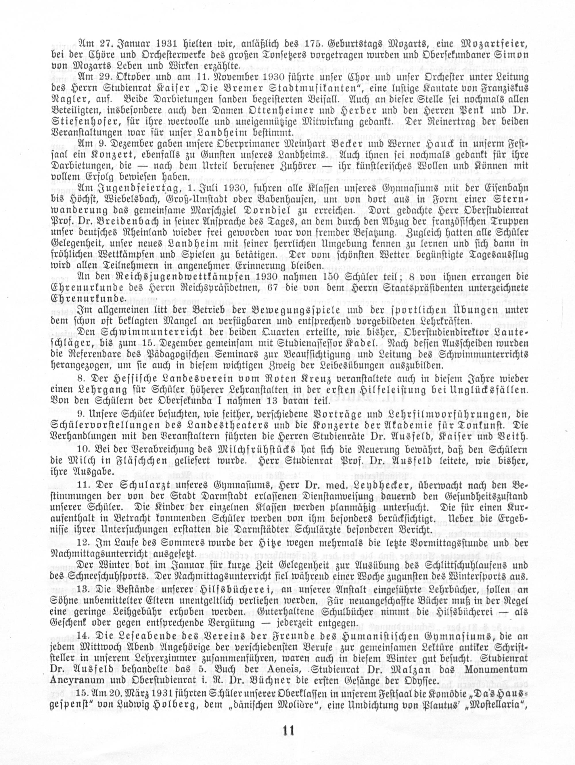 Am 27. Januar 1931 hielten wir, anläßlich des 175. Geburtstags Mozarts, eine Mozartfeier, bei der Chöre und Orcheſterwerke des großen Tonſetzers vorgetragen wurden und Oberſekundaner Simon von Mozarts Leben und Wirken erzählte.