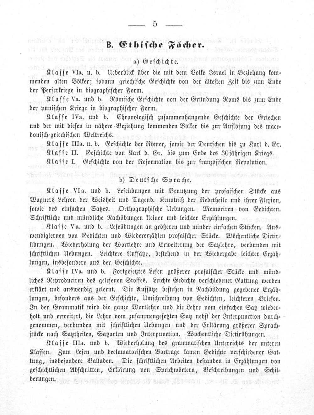 Klaſſe VIa. und b. Leſeübungen mit Benutzung der proſaiſchen Stücke aus Wagners Lehren der Weisheit und Tugend. Kenntniß der Redetheile und ihrer Flexion, ſowie des einfachen Satzes. Orthographiſche Uebungen. Memoriren von Gedichten. Schriftliche und mündliche Nachübungen kleiner und leichter Erzählungen.