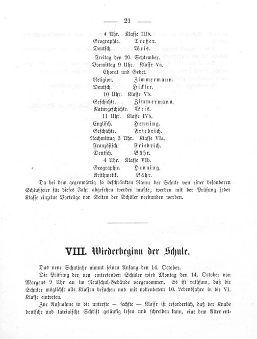 10 Uhr. Klaſſe Vb. Geſchichte. Zimmermann.