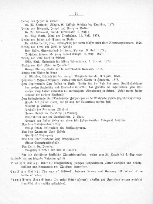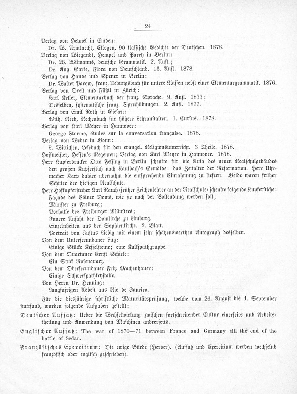 Für die diesjährige ſchriftliche Maturitätsprüfung, welche vom 26. Auguſt bis 4. September ſtattfand, wurden folgende Aufgaben geſtellt: