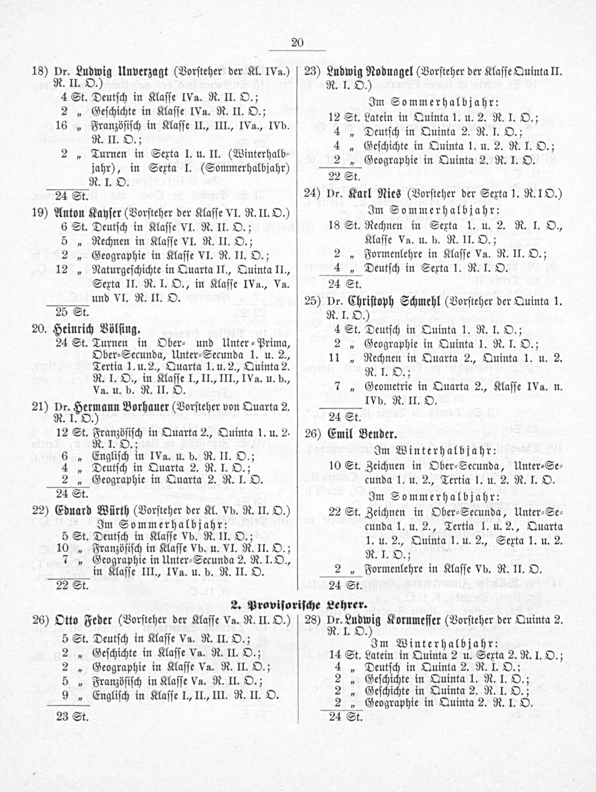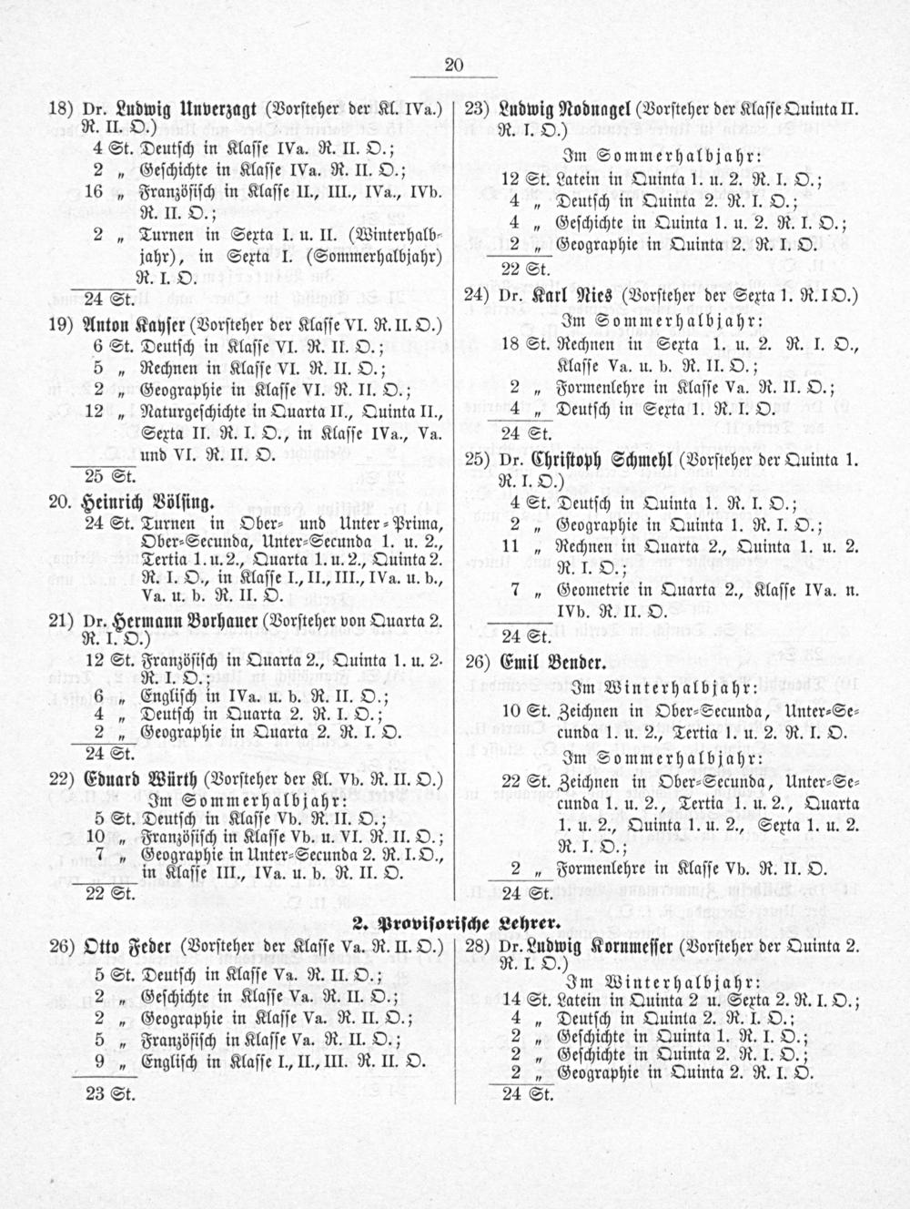 20. Heinrich Völſing. 24 St. Turnen in Ober⸗ und Unter⸗Prima, Ober⸗Secunda, Unter⸗Secunda 1. u. 2., Tertia 1. u. 2., Quarta 1. u. 2., Quinta 2. R. I. O., in Klaſſe I., II., III., IVa. u. b., Va. u. b. R. II. O.