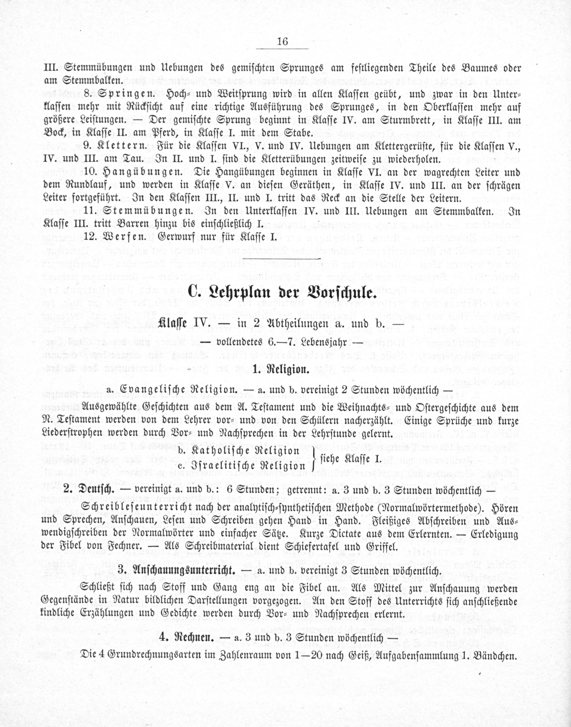 Klaſſe IV.— in 2 Abtheilungen a. und b.— — vollendetes 6.—7. Lebensjahr—
