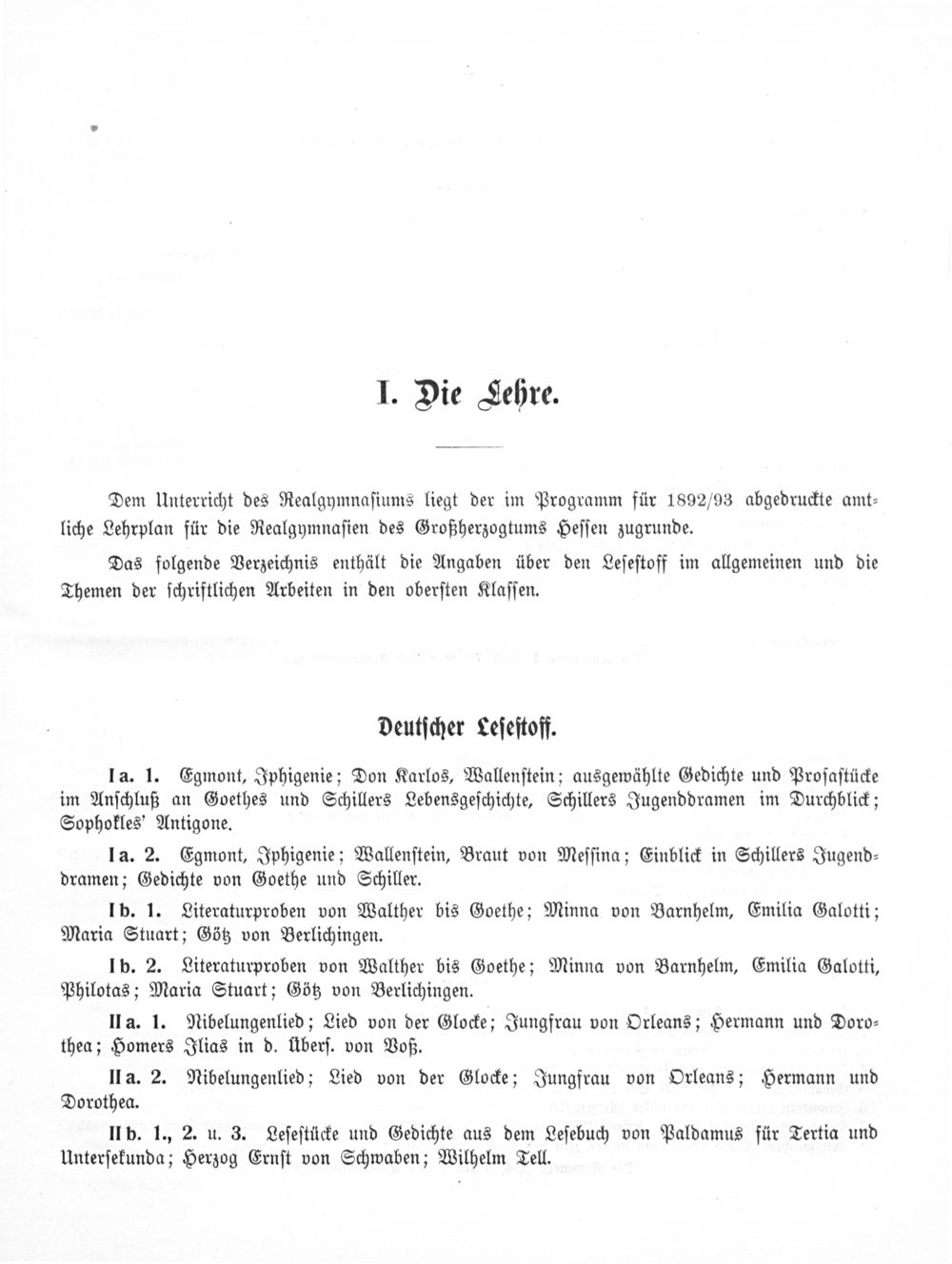 Dem Unterricht des Realgymnaſiums liegt der im Programm für 1892/93 abgedruckte amt⸗ liche Lehrplan für die Realgymnaſien des Großherzogtums Heſſen zugrunde.