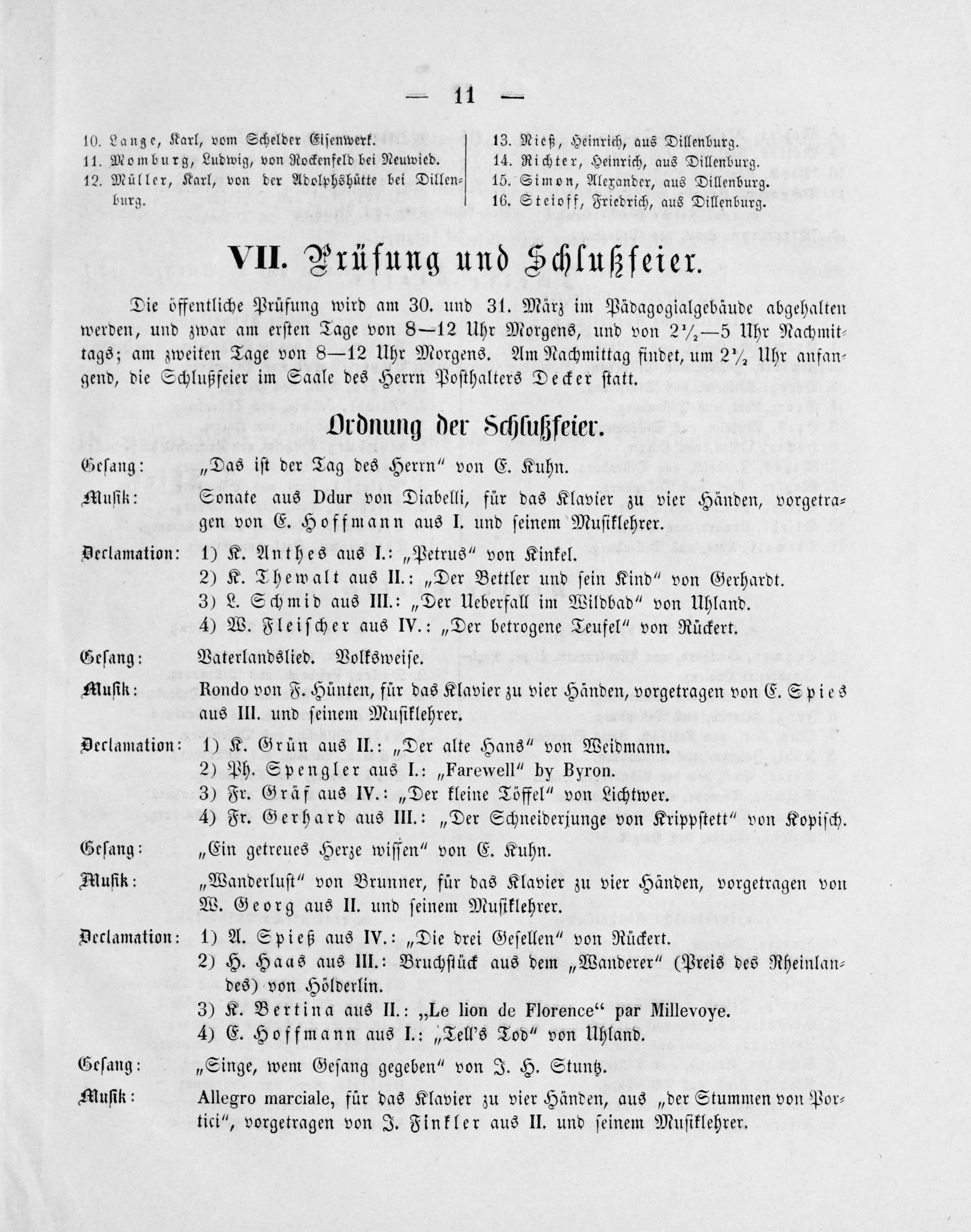VII. Prüfung und Öchlußfeier.
