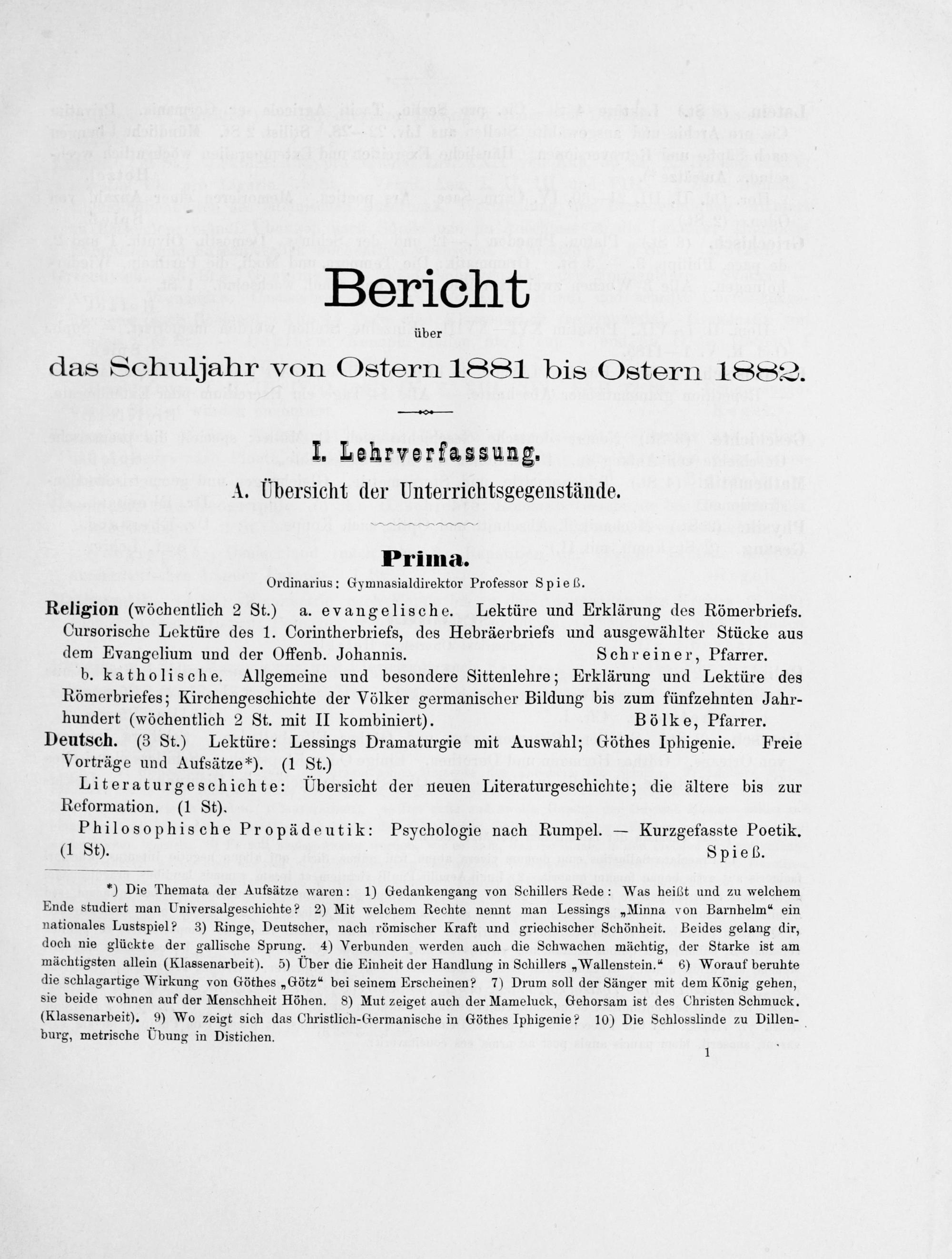 Ordinarius: Gymnasialdirektor Professor Spieß.