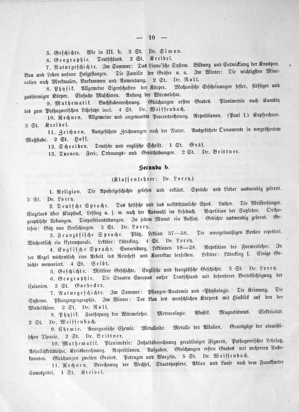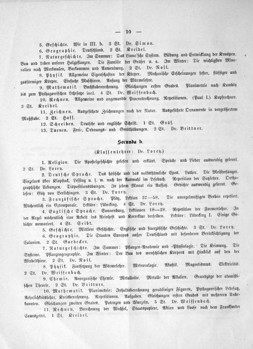 Secunda b. (Klaſſenlehrer: Dr. Lorey.)