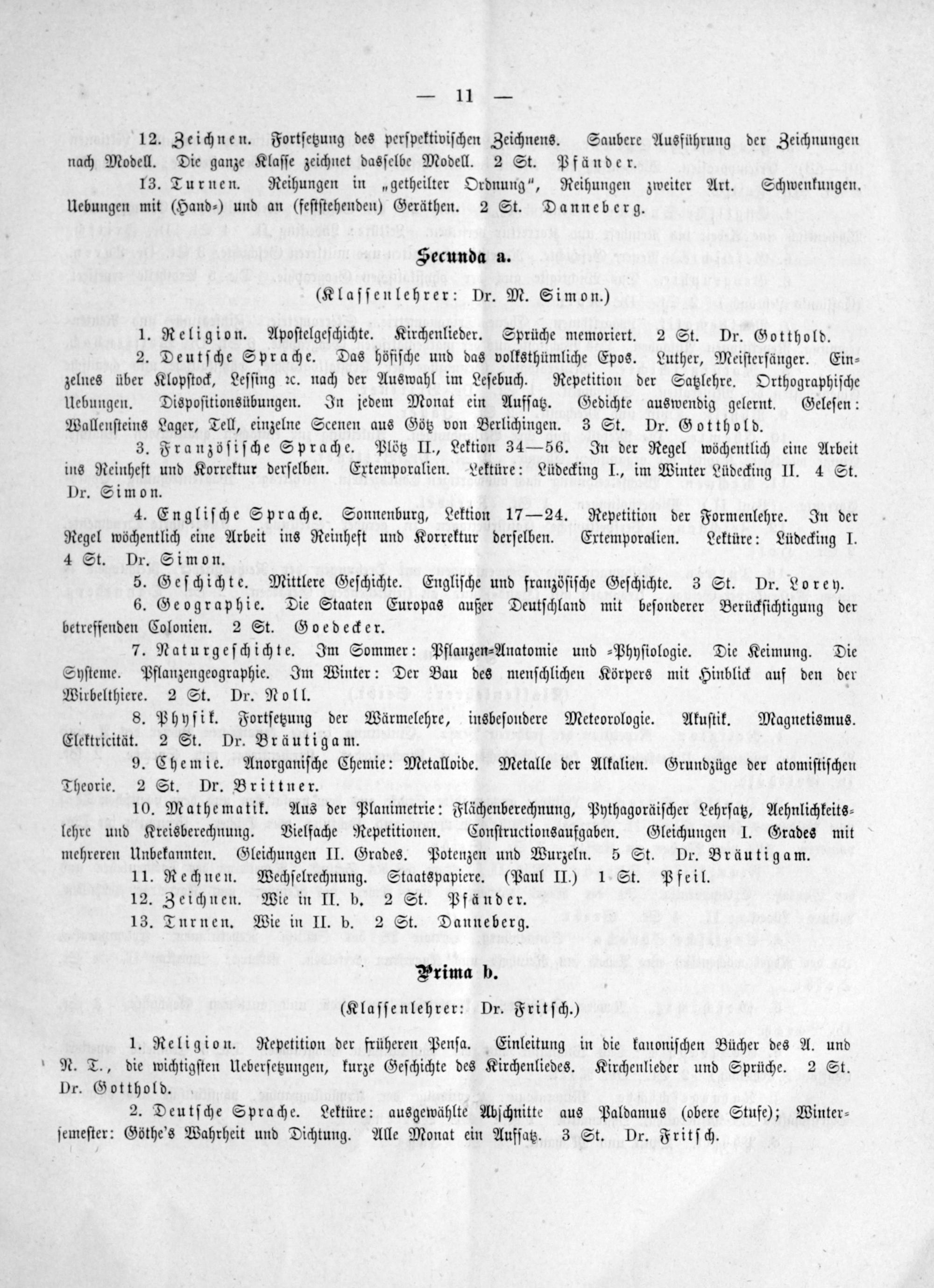 Secunda a. (Klaſſenlehrer: Dr. M. Simon.)