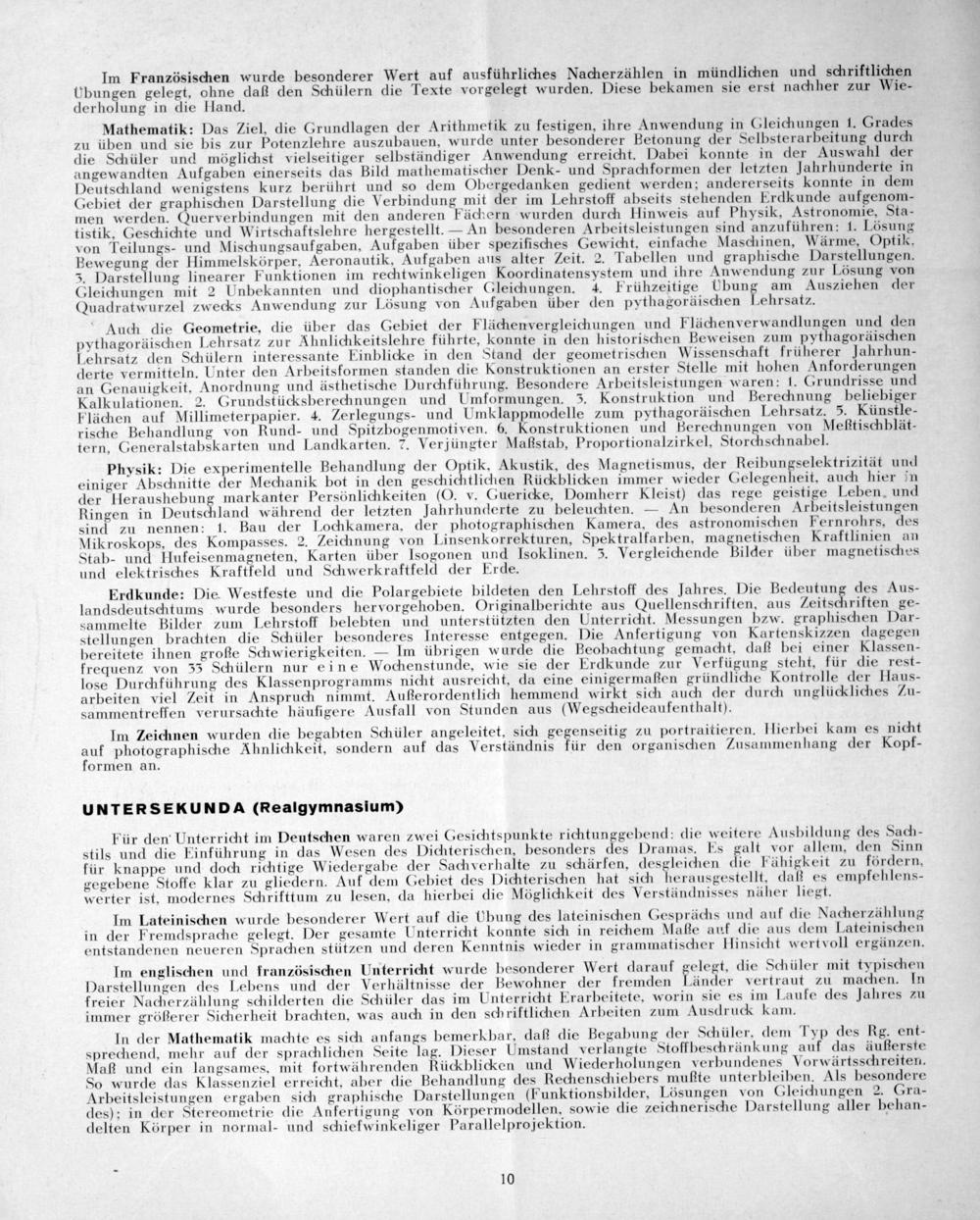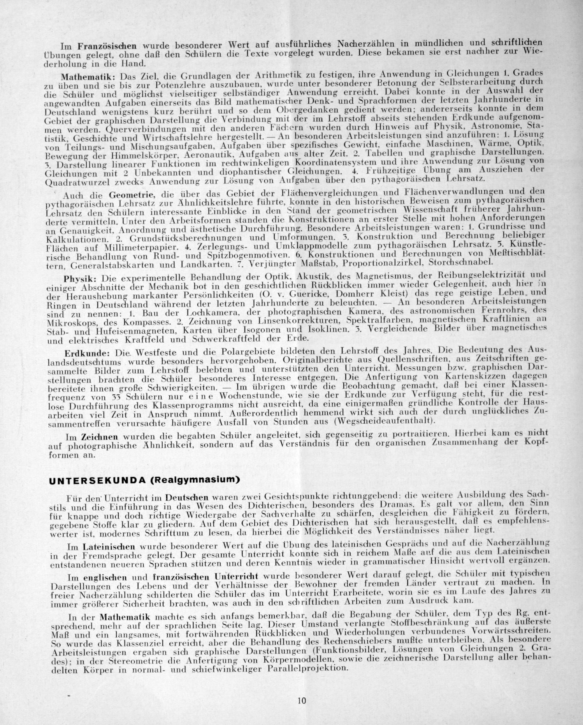 Im Lateinischen wurde besonderer Wert auf die Ubung des lateinischen Gesprächs und auf die Nacherzählung in der Fremdsprache gelegt. Der gesamte Unterricht konnte sich in reichem Mafte auf die aus dem Lateinischen entstandenen neueren Sprachen stützen und deren Kenntnis wieder in grammatischer Hinsicht wertvoll ergänzen.