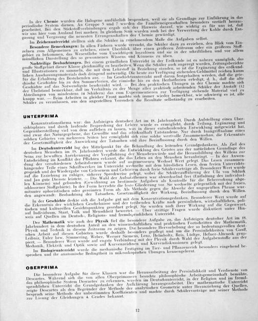 Besondere Bemerkungen: In allen Fächern wurde versucht, die Schüler dazu zu erziehen, den Blick vom Ein- zelnen zum Allgemeinen zu erheben, einen Oberblick über einen größeren Zeitraum oder ein größteres Stoff- gebiet zu bekommen, das Wesentliche vom Unwichtigen loszulösen und sie in der schriftlichen und vor allem mündlichen Darstellung des so gewonnenen Wissens und Könnens zu üben.