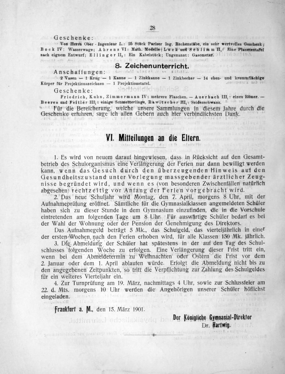 Frankfurt a. M., den 15. März 1001. Der Königliche Gymnasial-Direktor Dr. Hartwig.