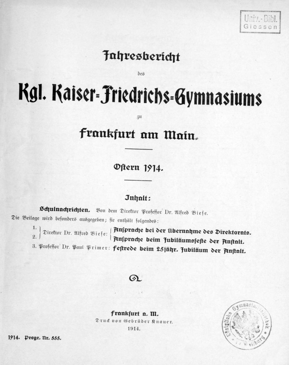 4 frankfurt a. m. /2 ☛ 8 Druck von Gebrüder Knauer. 8( 1914. 2 1* N 1514. Progr. Nr. 5686. 8