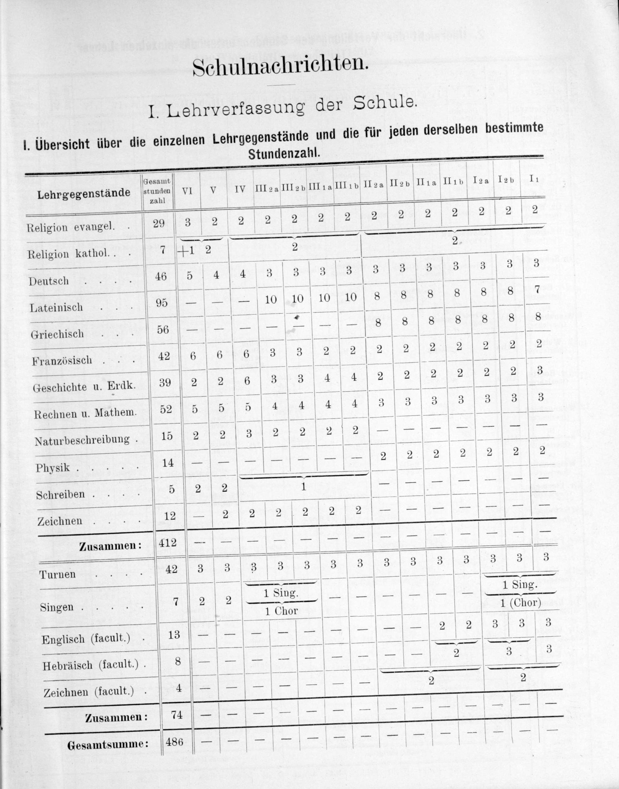Deutseh.... 5 4 4 3[3 V 3 V 3 V 3 V 312 3 3 3 V 3 ee. Griechisch... 56—= 38ſSss Französisch... V 66 3 3 2 22 2 2 2 22 2 —:——————!————j——— Geschichte u. Erdk. V.. 2 2 2 3 Rechnen u. Mathem. 8 5 V 1 4 3 22ſ2 3 3 3 Naturbeschreibung. ¹5 2213 22²*²—— Thsik....== 2 2 2 2 —————,————— Sebreiben... 2 1 Leichnen.... V V 2 212 V 2 2 2—