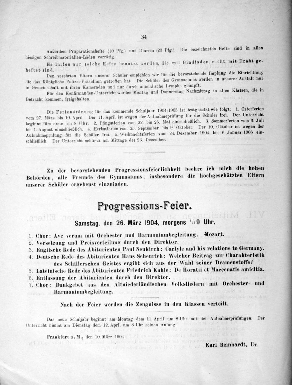 Frankfurt a. M., den 10. März 1904. Karl Reinhardt, Dr.
