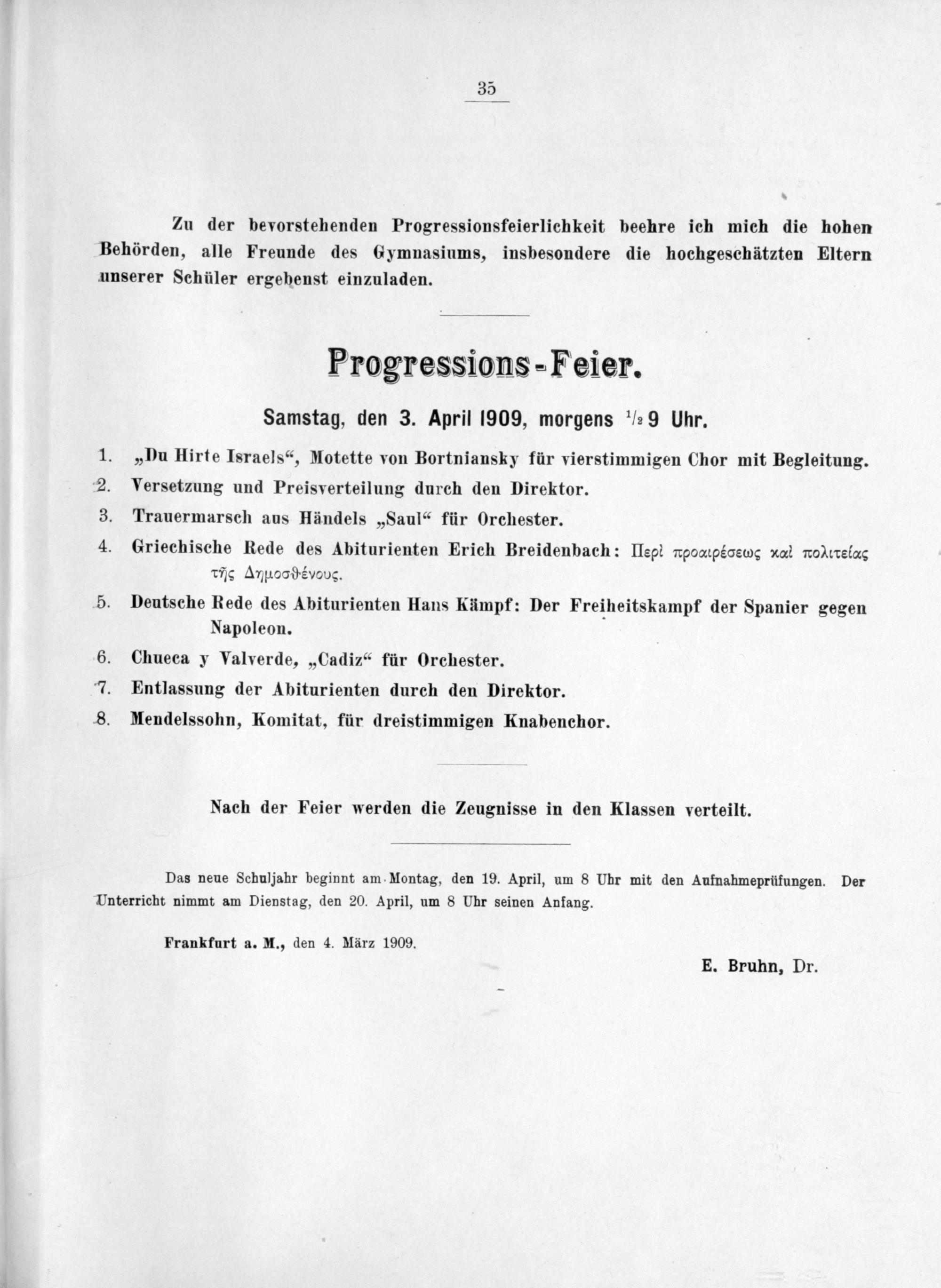 Frankfurt a. M., den 4. März 1909. E. Bruhn, Dr.