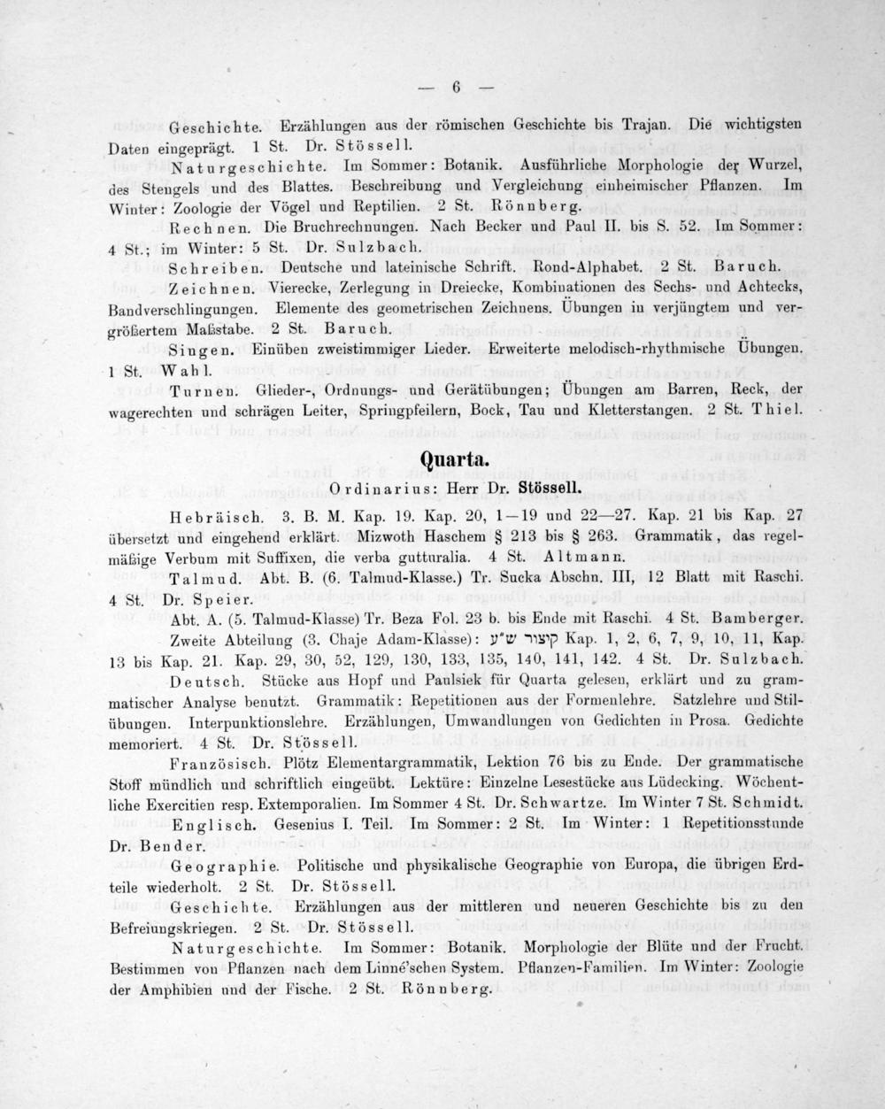 Quarta. OQrdinarius: Herr Dr. Stössell.