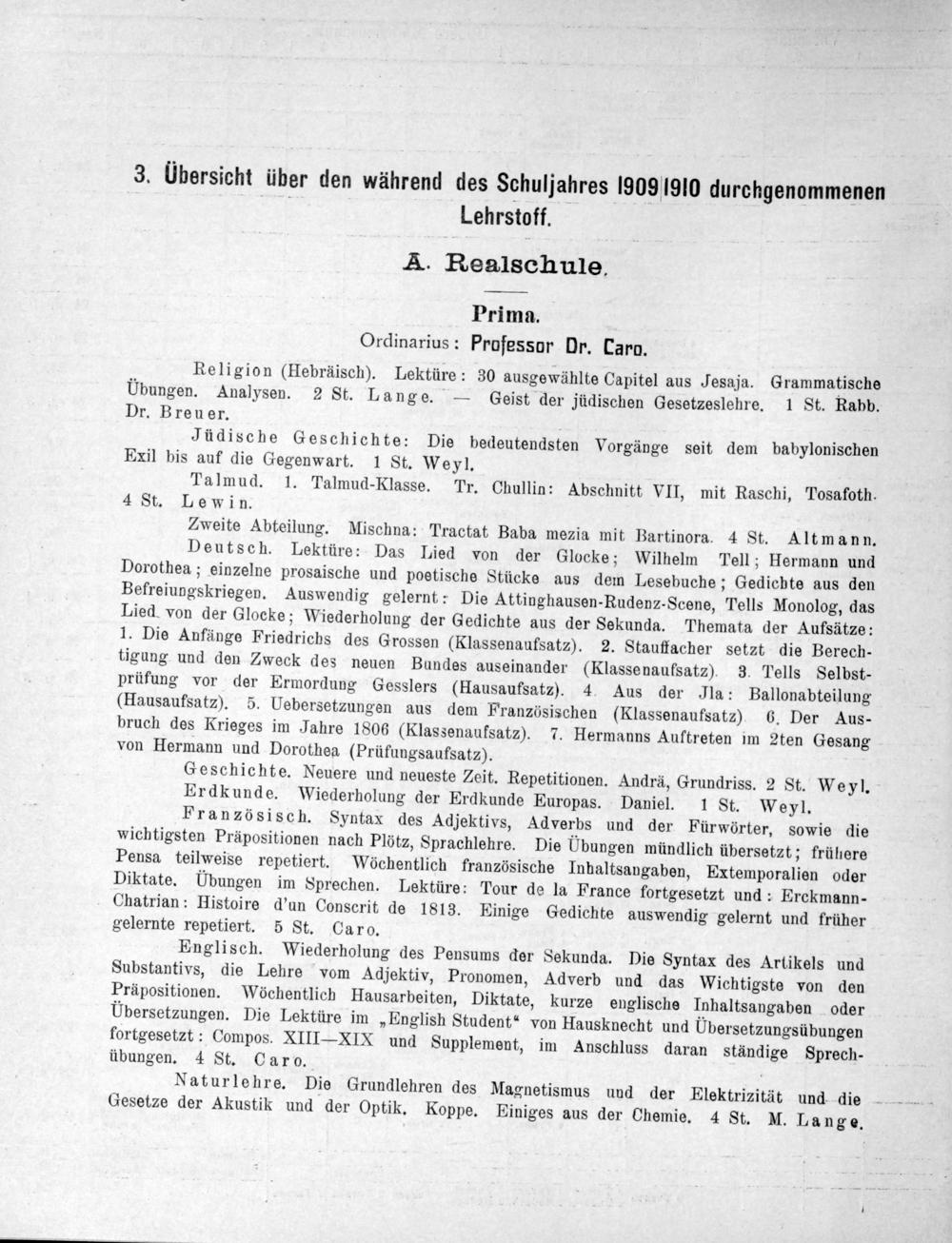 Prima. Ordinarius: Professur Dr. Caro.