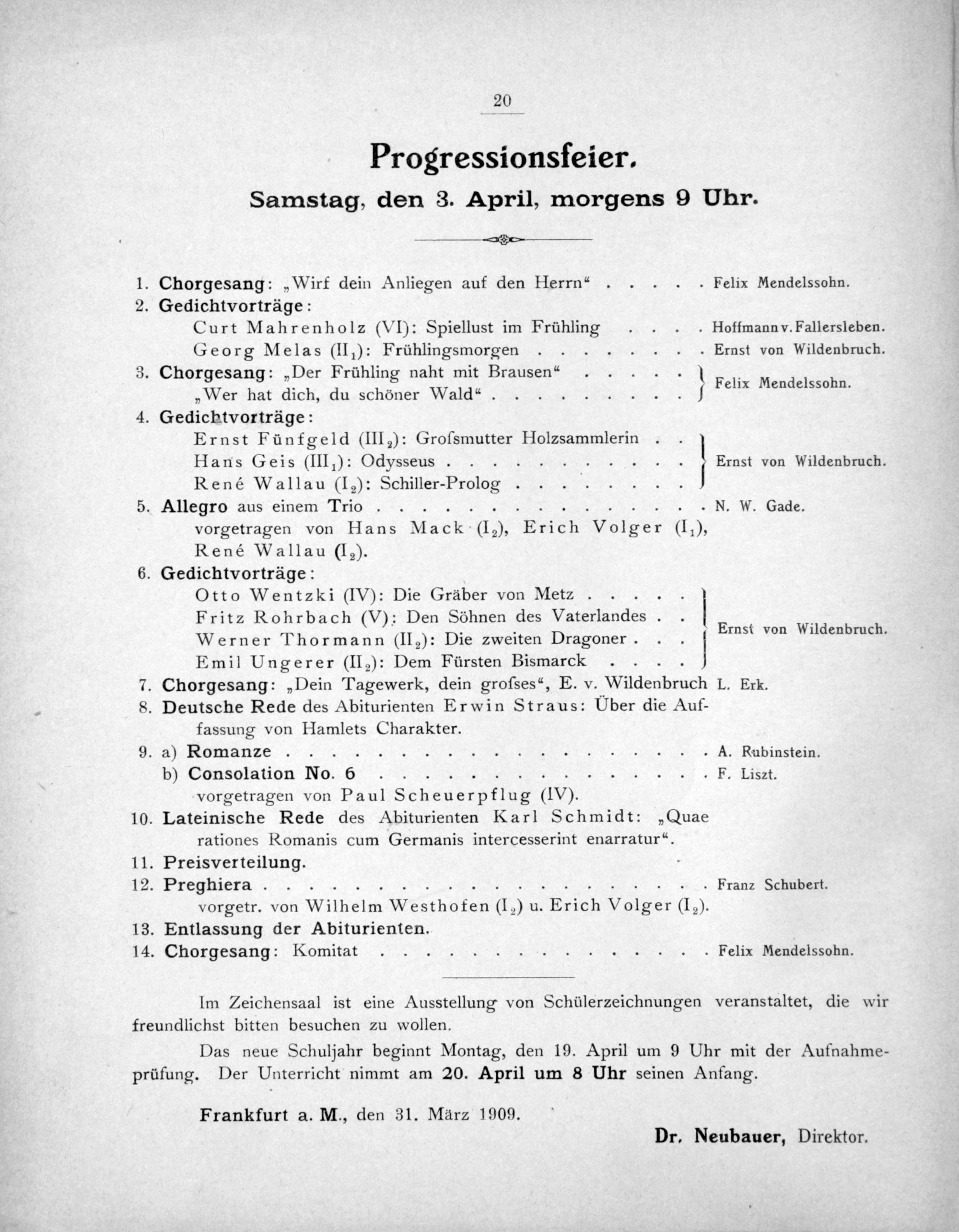 Frankfurt a. M., den 31. März 1909. Dr. Neubauer, Direktor.