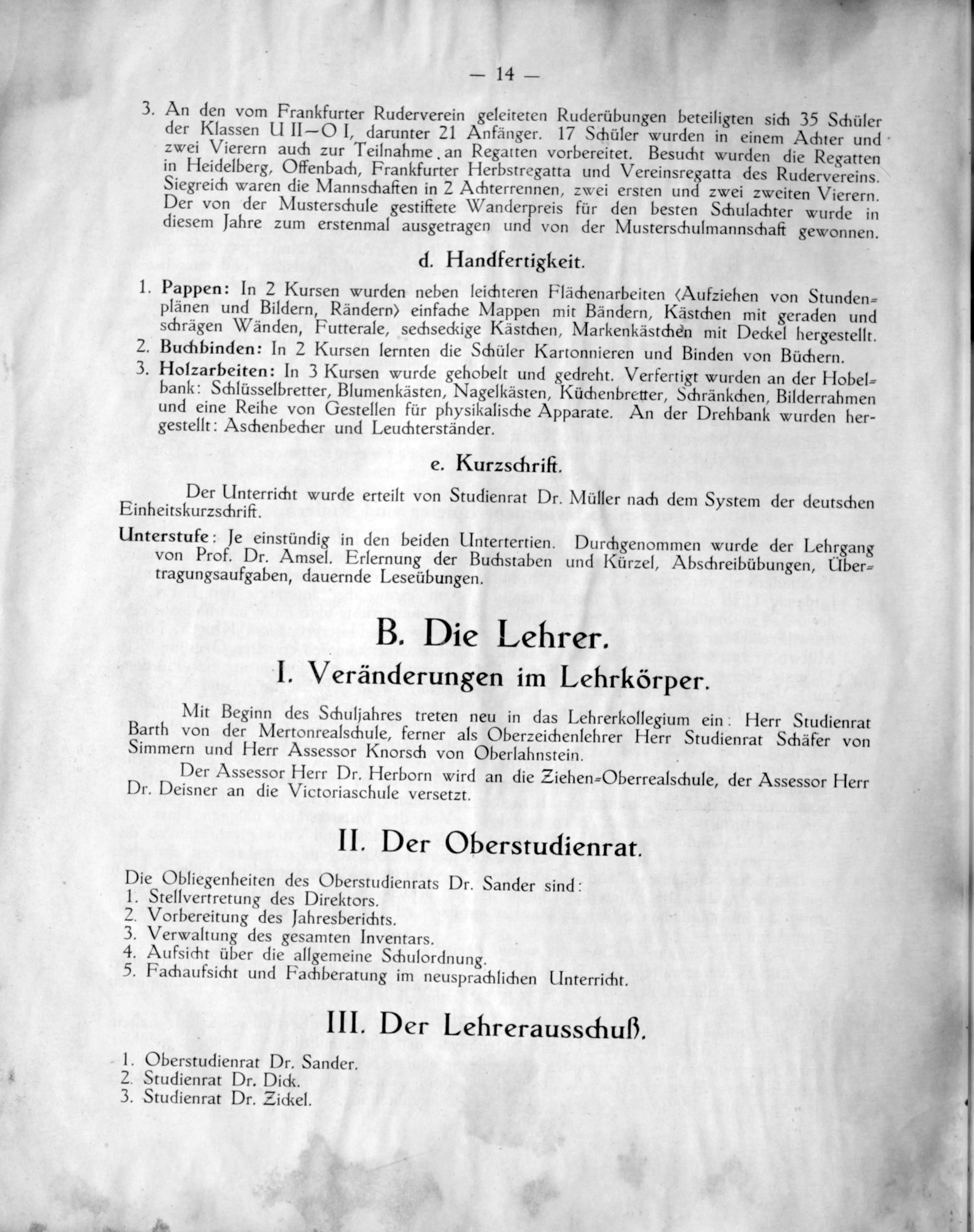 e Obliegenheiten des Oberstudienrats Dr. Sander sind: Stellvertretung des Direktors.