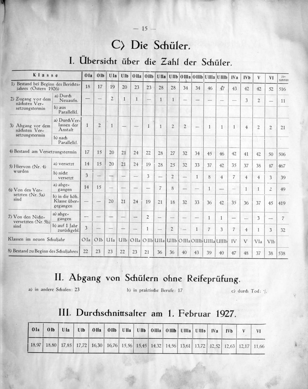 C) Die Schüler. I. UÜbersicht über die Zahl der Schüler.