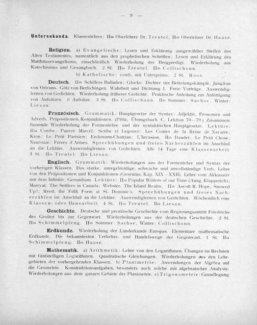 Untersekunda. Klassenlehrer: IIea Oberlehrer Dr. Treutel, IIb Oberlehrer Dr. Haase.