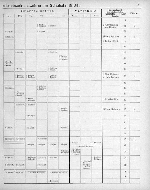 .... die einzelnen Lehrer im Schuljahr 1910)/11. 5 5 n„[ pS„ Gesamtzahl* Oberrealschule Vorschule Gaarrschendhenn Uverst eschäfts- Lehr. Tst- ſ.—— 5 W l e i V LV. 2.V. 3. V. iunden— V V s 8— 5. 2 Erdkde.„ r- ſi A. 2 Anschaunu 5 Rechnen ² Erdkde und Karten 3 23 2 ——— 2 Erdkde. 2 Naturk. 20 6 Mathem. 2 Phys. Kabinet 23 2 ——— 1— 2 Lehrer-Bibl. 21 —— 21 3 Gesch. 5 Deutsch 23 3 Turnen 6 Franz 23 5 Deutsch 4 3 Gesch.——— 4 Deutsch 24 6 Franz. 1rian 3 Religion 9 8 8 2 Religion 6 Pira e. 23 2 Erdkde. 3 Turnen 2 Naturk. 2 Nat. Kabinet 2 2 2 Naturk. 2 Erdkde. 3 Turnen u. Schulgarten 22 2 Religion 2 Religion 4 Deutsch 23B 6 Franz. 3 Turnen 4 Deutsch 23 6 Franz.— 4 Pranzar 2Schüler-Bibl. 22 „. 6 Mathem. 5 Rechnen 23 V Pelhäen V 2Chem.Kabinet 25 2 —————O———O—x&:jj—— 2 Religion 24 — 24 —— 2 Naturk. 2 Naturk. 2 Naturk. 23 ——— 24 —— 2 Zeichnen 2 Zeichnen 2 Zeichnen 26 3 1 Singen 11 Deutsechdhh 2 Singen 2 Singen 2 Singen 2 Singen 25 2 kathol. Religion 2 Religion 8 2 Schrei b.] 13 Deutsch 28 ³ Religi on] 5 Rechnen 2 Turnen 2 Zeichnen SReel 23 2 Zeichnen: 3 2 Schreib. 5 Rechnen 3 Turnen ² Kehrenen 3 Turnen chrei 2 Rerlnon 28 111 Deutsch 5 Rechnen 2 Schreib. 2 Schreib. 2 Schreib. 2 Religion 28 2 Turnen 1 Singen— 1 2 kathol. Religion 2 kathol. Religion 3 kathol. Religion 9 V 6 —*—— 5 Rechnen 8