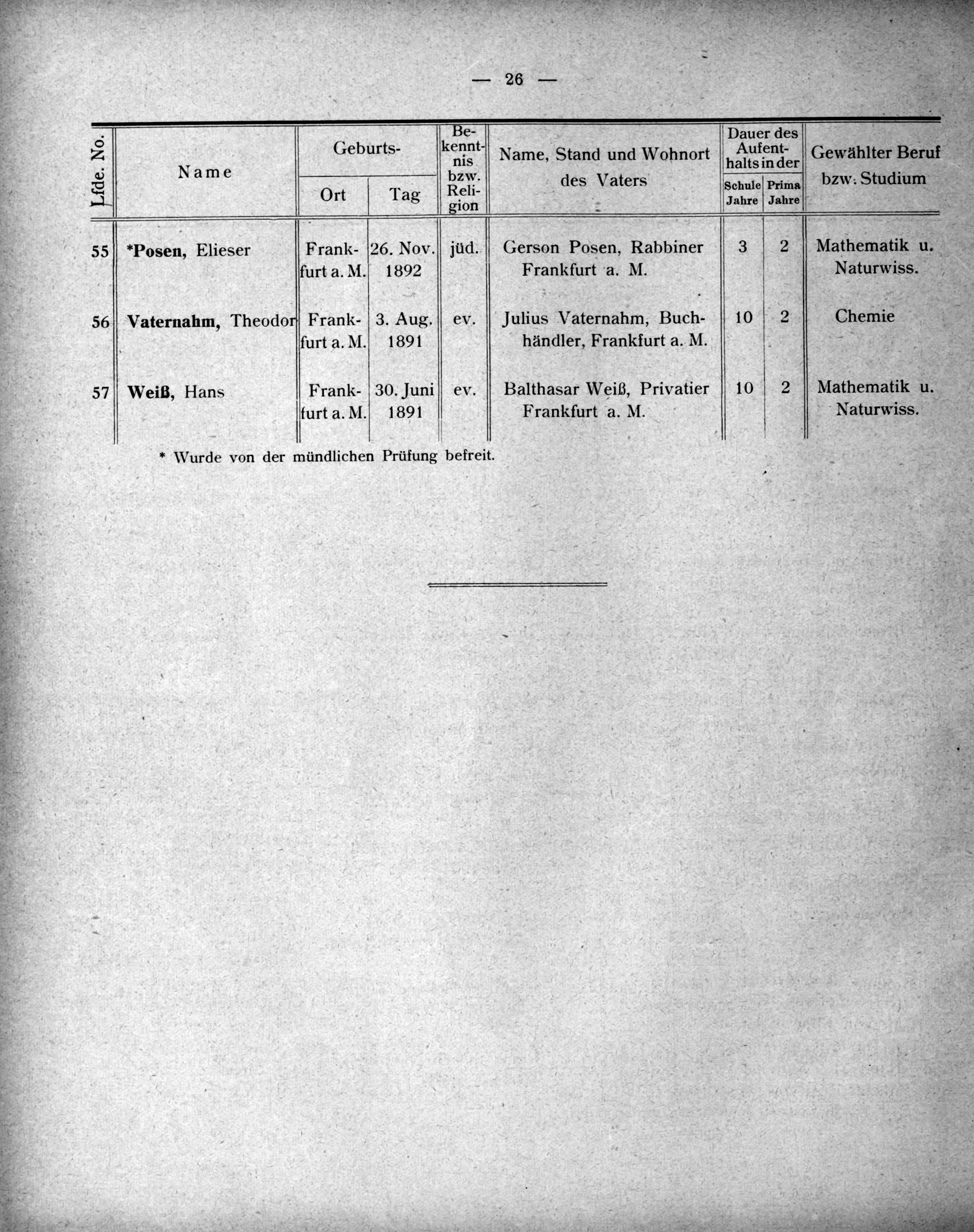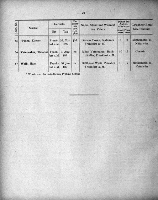 Vaternahm, Theodor Frank- 3. Aug. 1 Julus Vatemmabim. Buch- furt a. M. 1891 haändler, Frankifurt a. M.