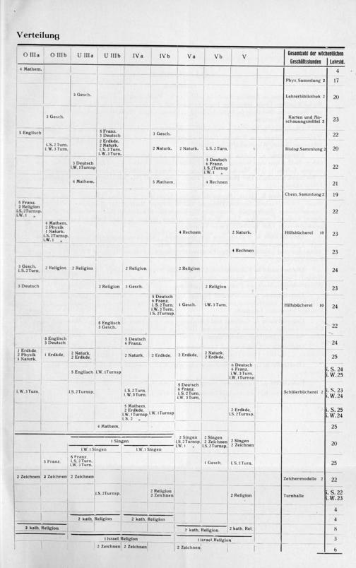 ———QQO⏑Q—:—:—.—;,*———— OQ‧a˙a.———2„ ·————————— é—- ſ ſ é TPpPp—— Gesamtzahl der wöchenulchen O IIIa O IIIb U IIIa U IIIb IZVa IVb Va Vb V Geschältsstunden Ledrsld. 4 Mathem. 4 —— p— V Phys. Sammlung 2 17 V 3 3 Gesch. Lehrerbibliothek 2 20 b 3 Gesch. Karten und An- 23 schauungsmittel 2 ——— 5 Englisch 5 Prane 3 Gesch. V 22 — 3 2 Erdlde. V 2 T 4 6 15 3 Lurn. 7 Natge. 2 Naturk. 2 Naturk. i. S. 2 Turn. Biolog. Sammlung 2 ß20 — V rW. 3Z furn.— 5 Deutsch 3 Deutsch 6 Franz. 22 i. W. 1Turnsp i. S. 2Turnsp V ſi.W. 1„ 4 Mathem. 5 Mathem. 4 Rechnen 21 Chem. Sammlung 2 19 3 5 Franz. 2 Religion 1. S. 2Turnsp. 22 1.. 1„ V Aathem. 2 Physik 1 Naiurk. 4 Rechnen 2 Naturk. Hilfsbücherei 10] 23 i. S. 2Turnsp. i. W. 1„ 1 4 Rechnen 23 ——— 4 H2sen. 2 Religion b 2 Religion V 2 Religion 2 Religion 24 3 Deutsch 2 Religion 3 Gesch. 2 Religion 23 5 Deutsch 6 Franz. LS.2 Turn. ¹ desch. i.W. 3 Turn. Hilfsbücherei 10]% 24 i. W. 3 Turn i S. 2 Turnsp. —— 5 Englisch 3 Gesch. V 22 ———— 1— 5 Englisch 5 Deutsch 24 3 Deutsch 2 6 Franz. Erdkde 2 Naturk 2 Physik 1 Erdkde. 2 Naturt.* 2 Naturk. 2 Erdkde. 2 Erdude. 2 Naturb. 25 1 Naiurk. 2 Erdude. 6 Deutsch. 6 Franz. i. S. 24 5 Englisch i. W. 1 Turnsp i. W. 3 Turn. i. W. 25 ii. W. 1Turnso. S Deutsch 8 1 6 Franz. 5— 2 Ii. S. 1. W. 3 Turn. 1.S. 2 Turnsp. 1 5 2 Turn 1S.2 Turn V Schülerbücherei 2 N 23 i. W. 3 Turn.. 5Matbemn. V— 2 Erdkde. i. S. 25 2 Erdkde. r. e..D. i.M. 1Turnsp i.W. ſturnsp 1.S. 2 Turnsp. ſi. W. 24 1. S. 2„—— 4 Mathem. 25 2 Singen 2 Singen 1 Singen ſ1. S. 2Turnsp. 2 Teichnen 2 Singen 20 i.W. 1„ i S. 2 Turnsp. 2 Zeichnen . 11.w. 1 Singen 5 i. W. 1 Singen. 5 Franz. 1. S. 2 Turn. 3 V 5 Franz. 1. 3 urn. V 1 Gesch. i. S. 2 Turn. 25 ———————— 2 2,cmen 2 Zeichnen 2 zalchnen V V V Zeichenmodelle 2 22 ÿ.. 3 2 Religion i. S. 22 i. S. 2 Turnsp. j 4. 2 nien 2 Relieion Turnhalle ſ. W. 23 — V 4 2 kath. Religion 2 kath. Religion o 4 —117—— 2 kath. Religion—— 1 2 kath. Religion 2 kath. Rel. 8 —— 1israel. Religion— lisrael Religion 3 2 Zeichnen 2 zeichnen 2 2 Zeichnen 6