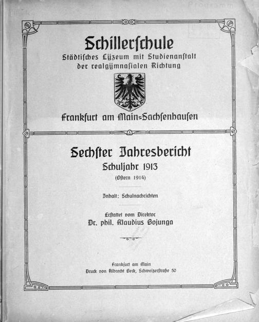 Sochſter Jahresbericht Schuljahr 1913